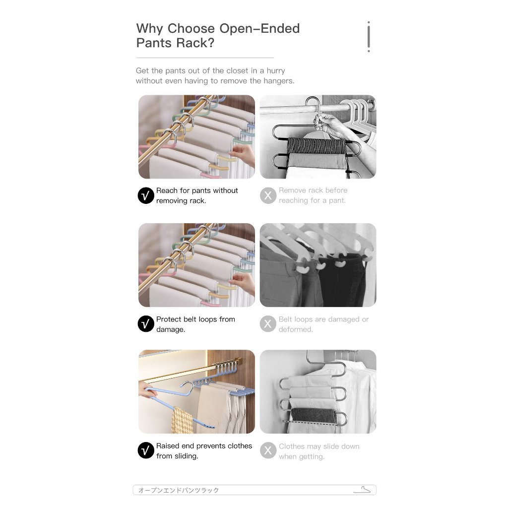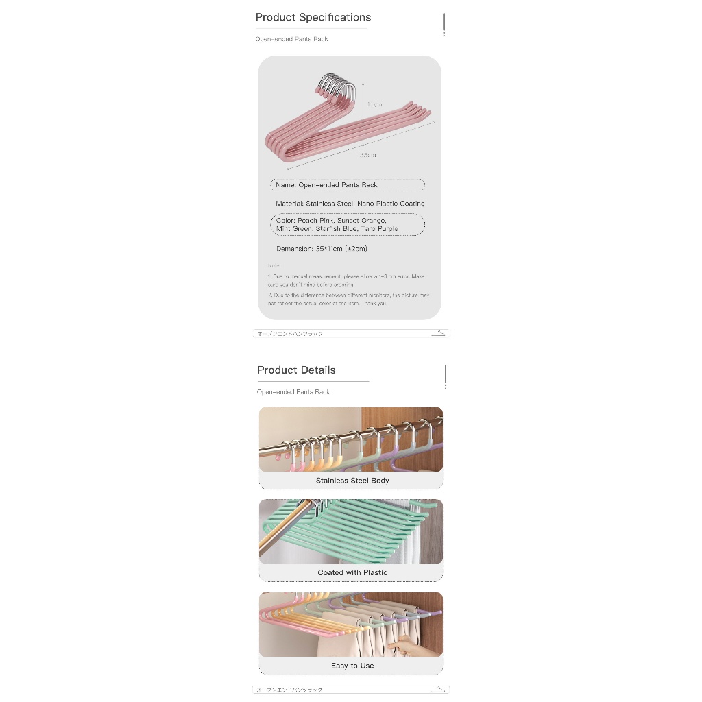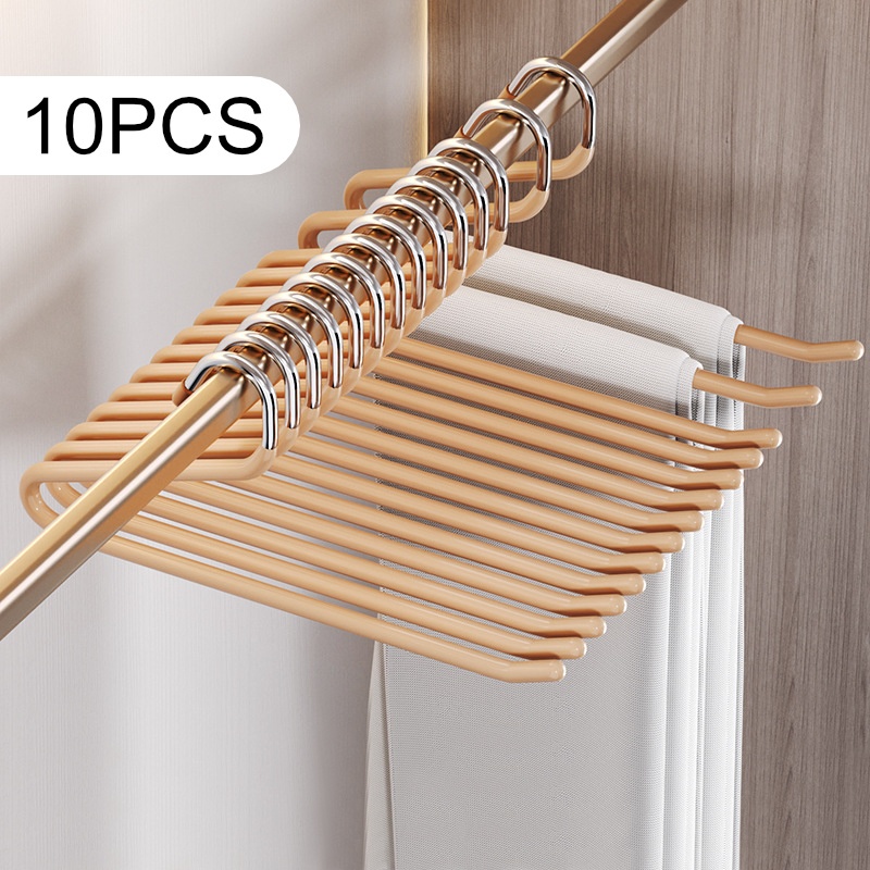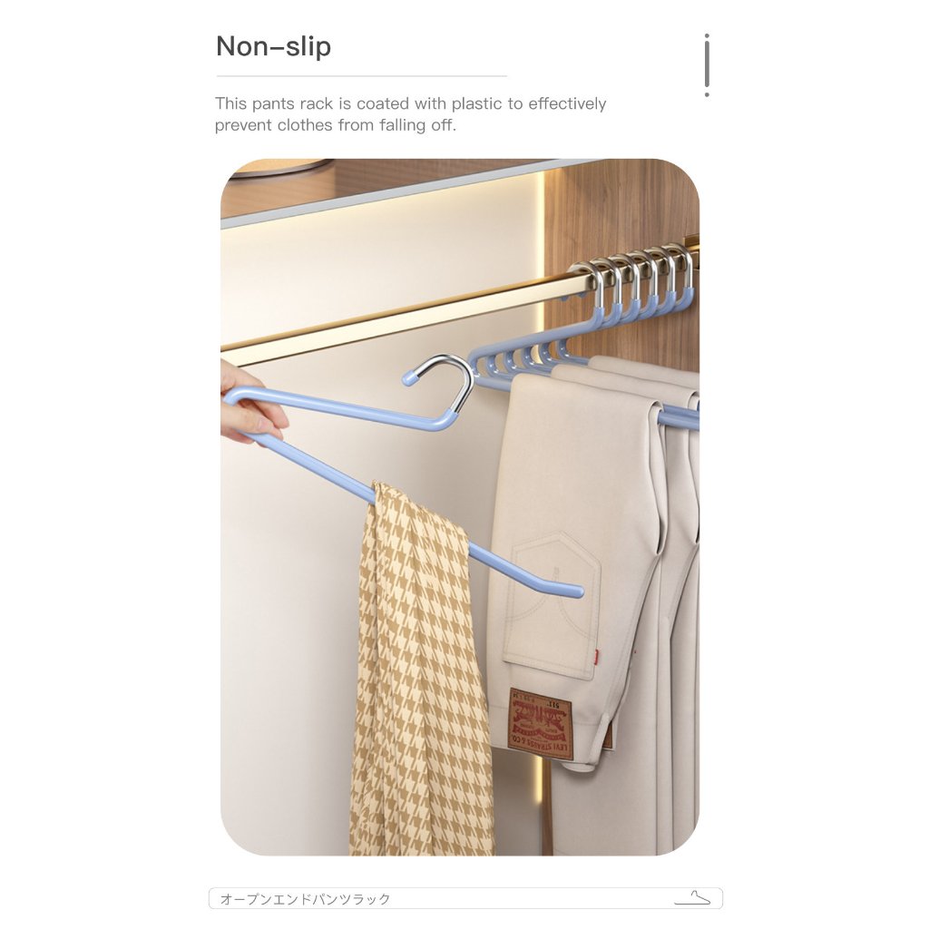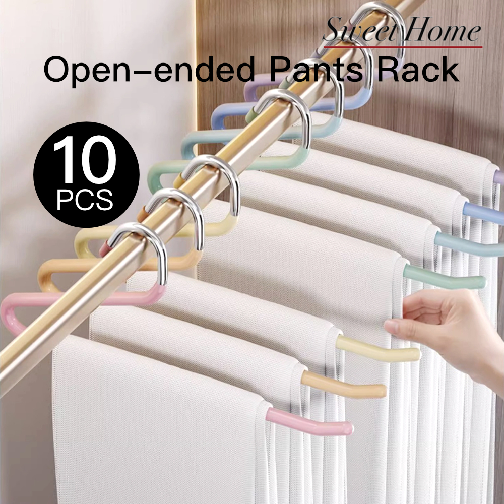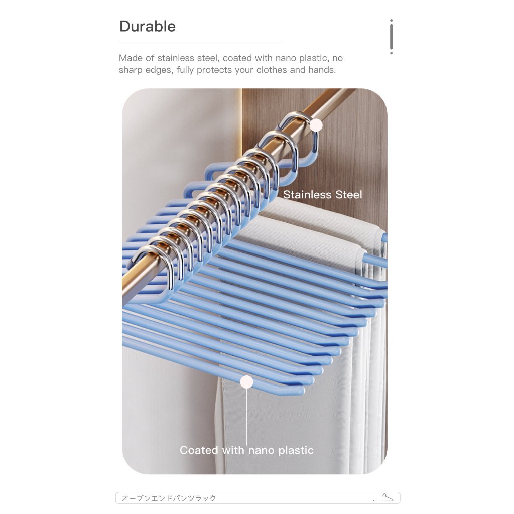 [Bundle of 10] Open-ended Pants Rack Nonslip Nano Plastic Coating Trousers Pants Hanger Stainless Steel Storage Shelf