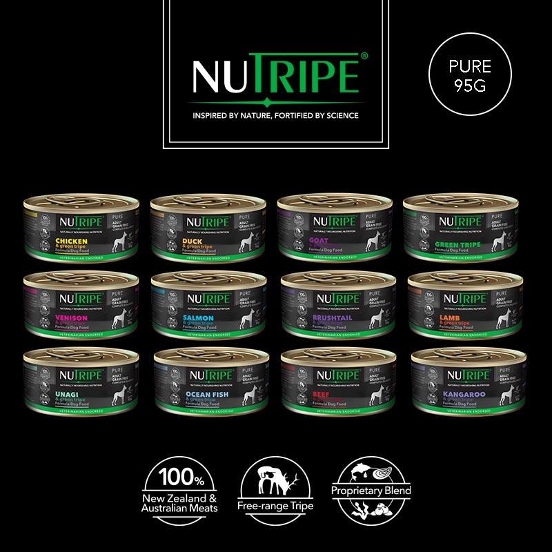 [PROMO] [Bundle of 12/24] Nutripe Pure with Green Tripe Dog Wet Food, 95g, 12 Flavors Available