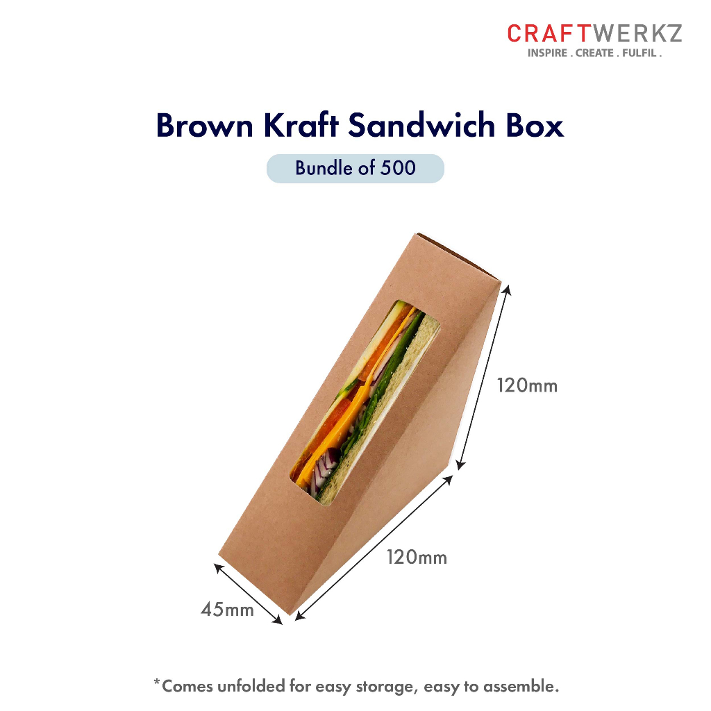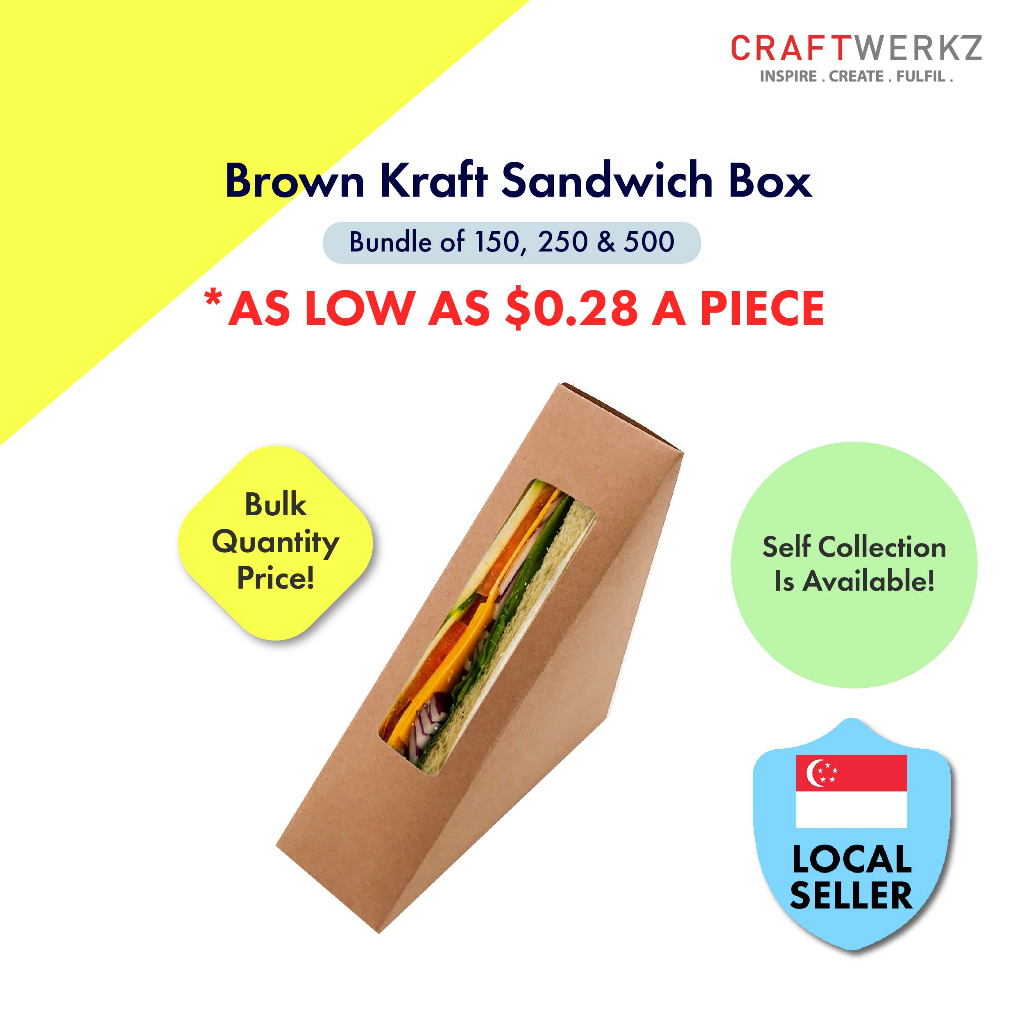 {Bundle of 150, 250 & 500} SG READY STOCK Brown Kraft Sandwich Box with Window