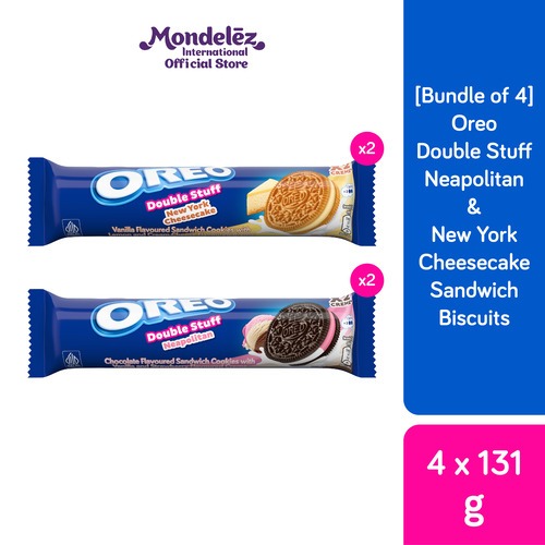 [Bundle of 2/4] Oreo Double Stuff Sandwich Biscuits 131G - Neopolitan & New York Cheesecake Flavours
