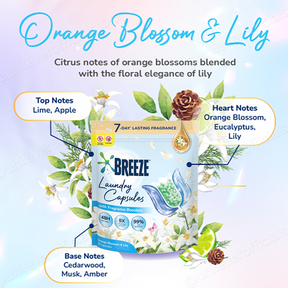 [Bundle of 2] Breeze Laundry Capsules with Fragrance Booster Beads 36 pcs