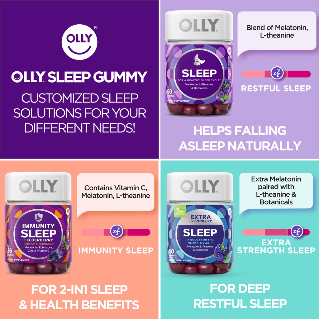[Bundle of 2] OLLY Extra Strength Sleep Gummy Supplements with Melatonin 5mg, For Healthy Sleep Cycle (EXP: 02/2027)