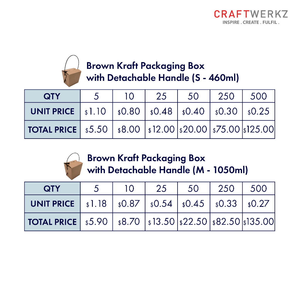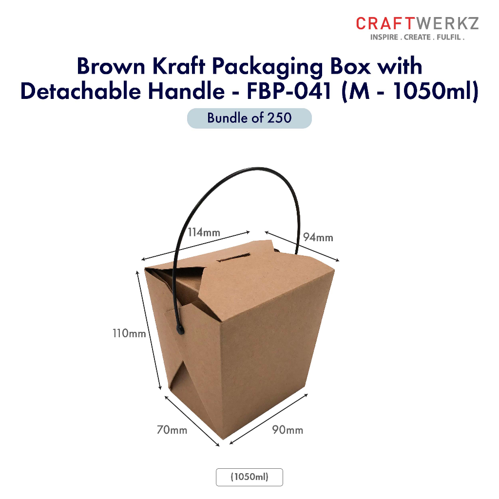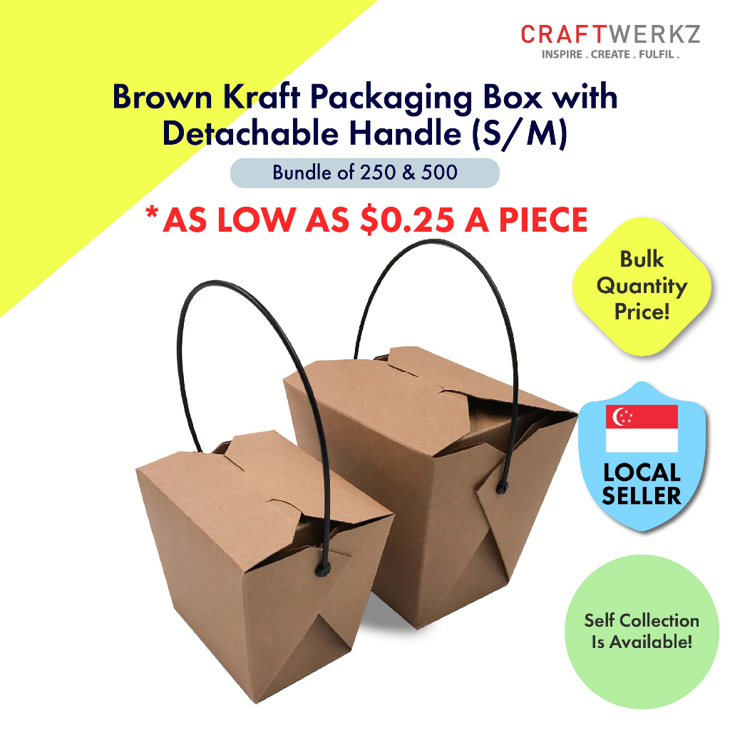 {Bundle of 250 & 500} Kraft Packaging Box with Detachable Handle (SG READY STOCK )