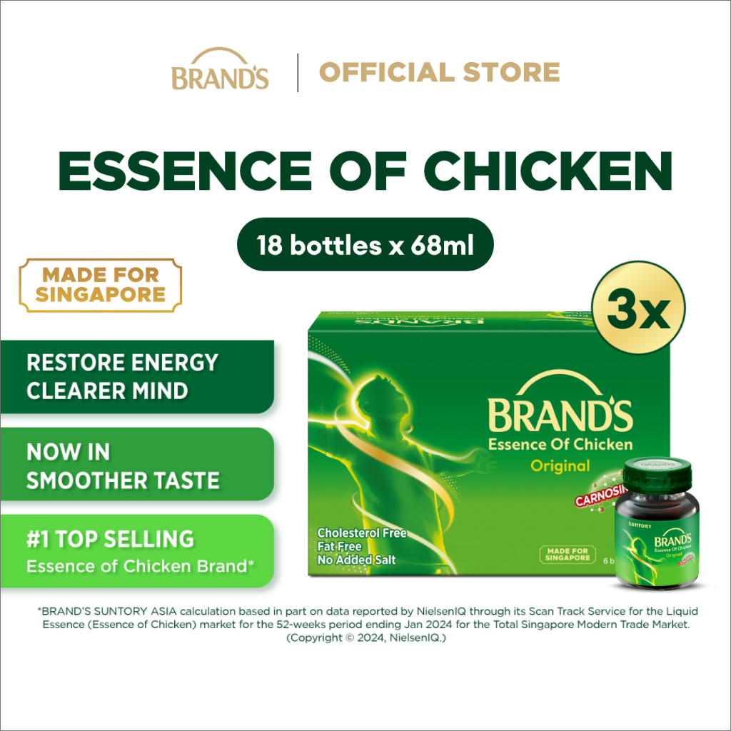 [Bundle of 3] BRAND'S Essence of Chicken 68ml (6 btls/pack) - Restores Energy, Clearer Mind, Halal, Fat Free