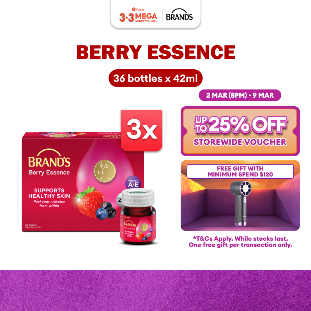 [Bundle of 3] BRAND'S Berry Essence 42ml (12 btls/pack) - For Radiant Skin, With Vitamin A, E, Zinc, Halal