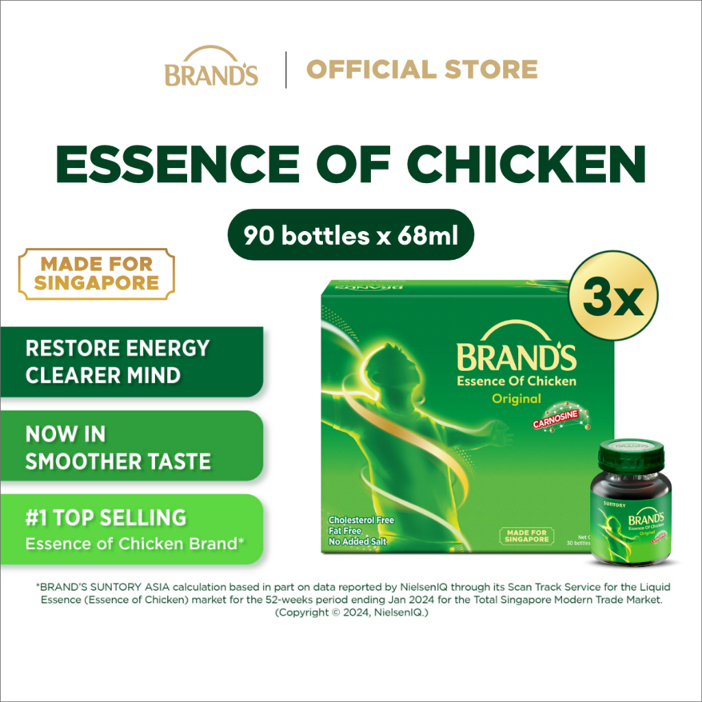 [Bundle of 3] BRAND'S Essence of Chicken 68ml (30 btls/pack) - Restores Energy, Clearer Mind, Halal, Fat Free