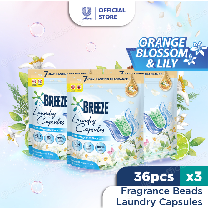 [Bundle of 3] Breeze Laundry Capsules with Fragrance Booster Beads 36 pcs