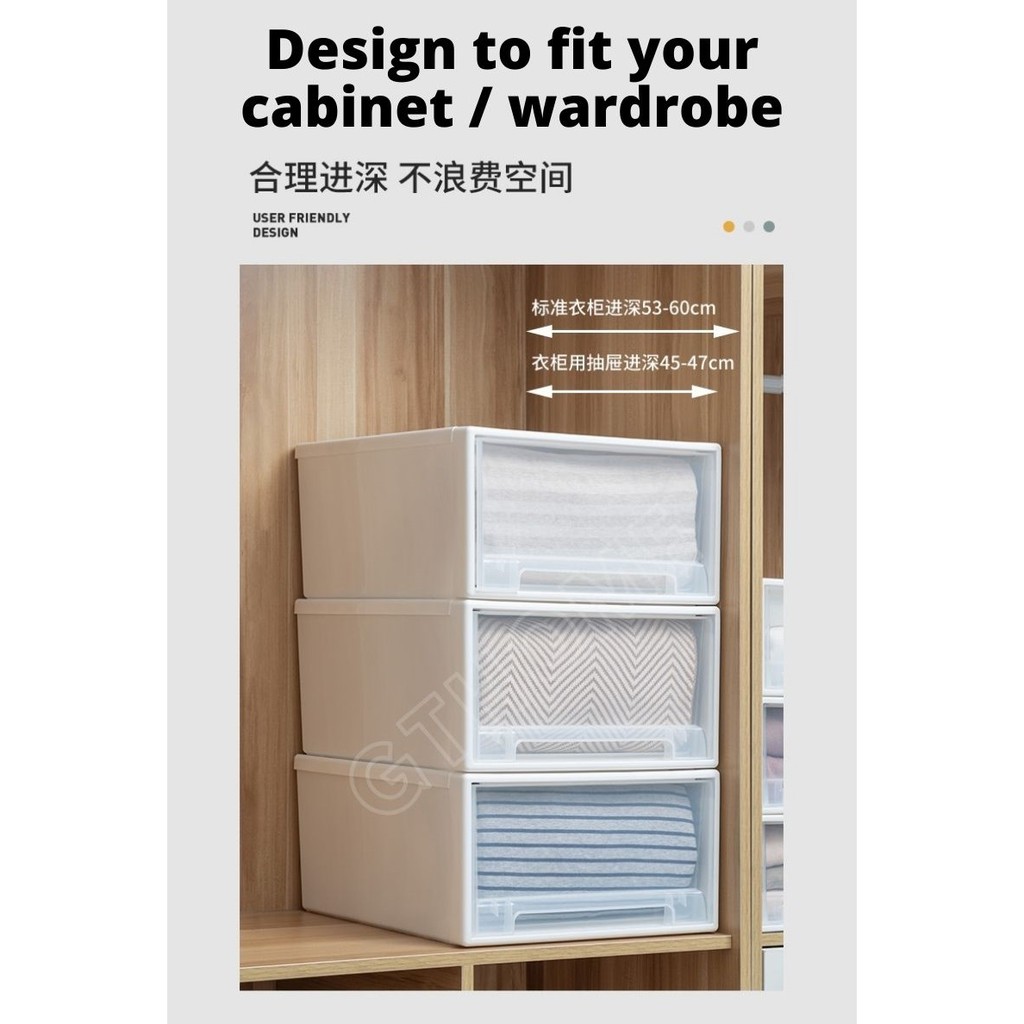 [Bundle of 3] Stackable Transparent Drawer Storage Box /Plastic Container / Wardrobe Organizer Box/Pulling drawer Wheel