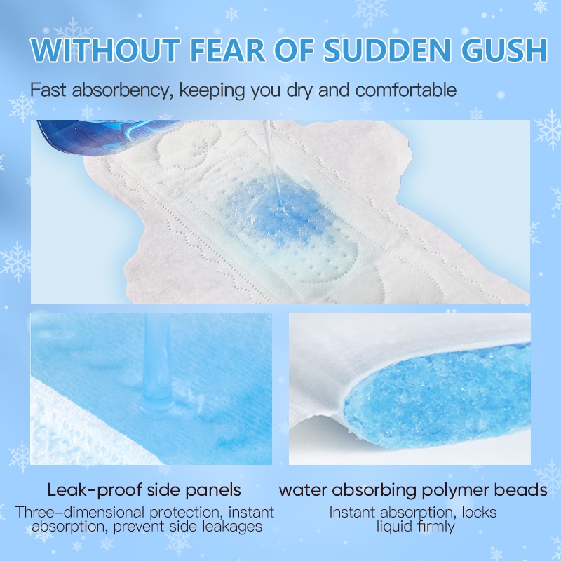 [Bundle of 3]UUcare Cool Tech Sanitary Pads 32cm 8pads Pure Cotton Mint Extract Breathable Refreshing Night Wing