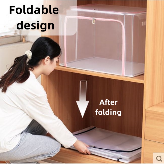 <Buy 5 Free 1> SG SHIP Steel Frame Storage Boxes Foldable Breathable Transparent Clothing Quilt Organizer Dustproof Bag