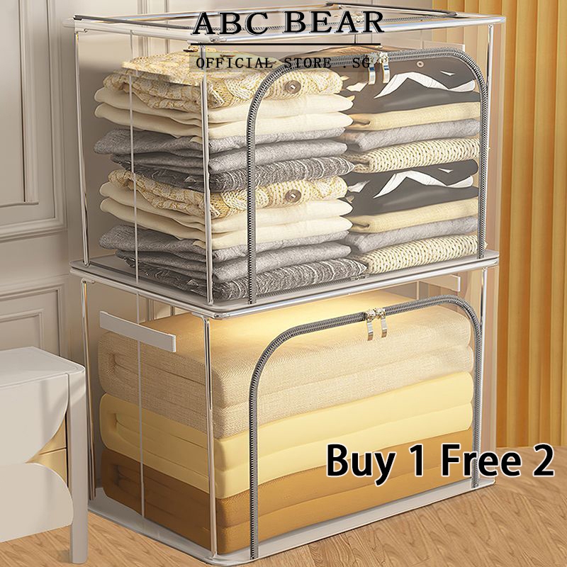 [Buy1 get 2] SG Transparent Dust-proof Thickened Foldable Storage Box wardrobe organizer with Handles stackable storage