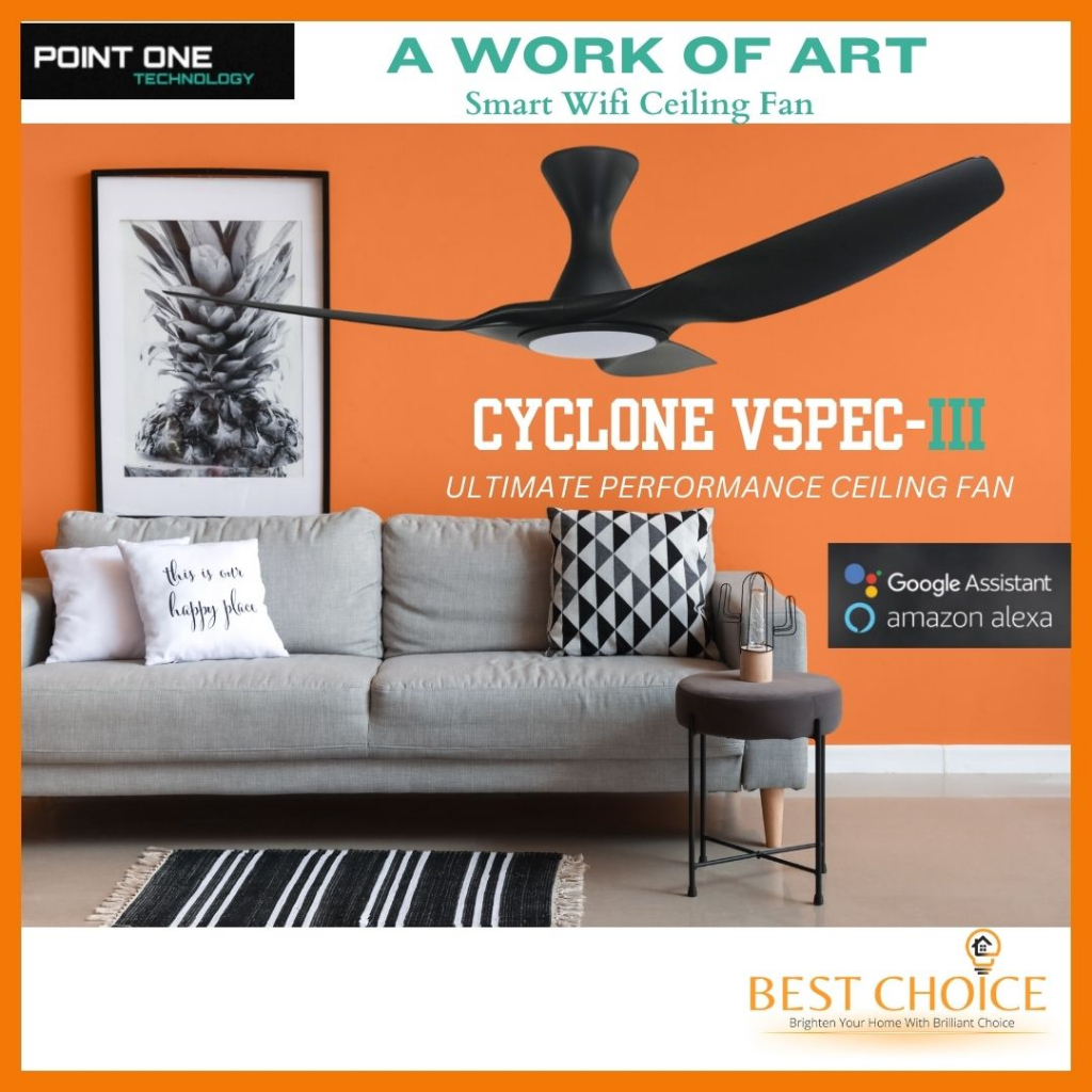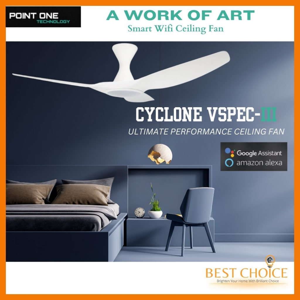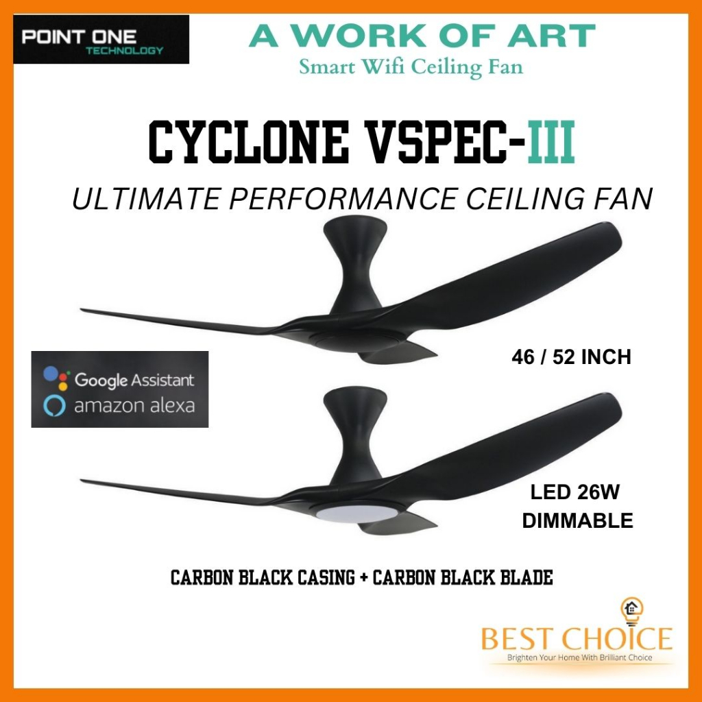 [CDC SG60] PO ECO FAN CYCLONE VSPEC-III SMART WIFI Ceiling FAN DC Motor 46/52 inch (LED Dimmer)
