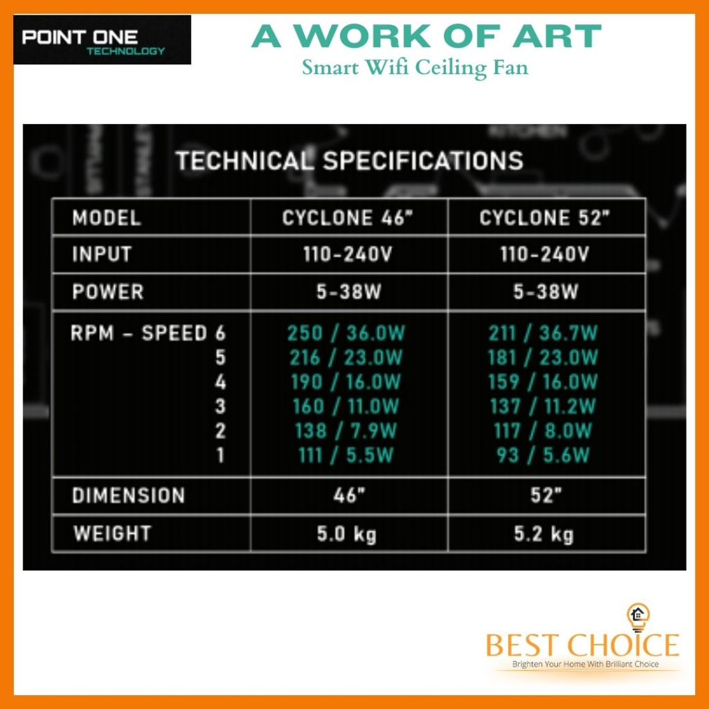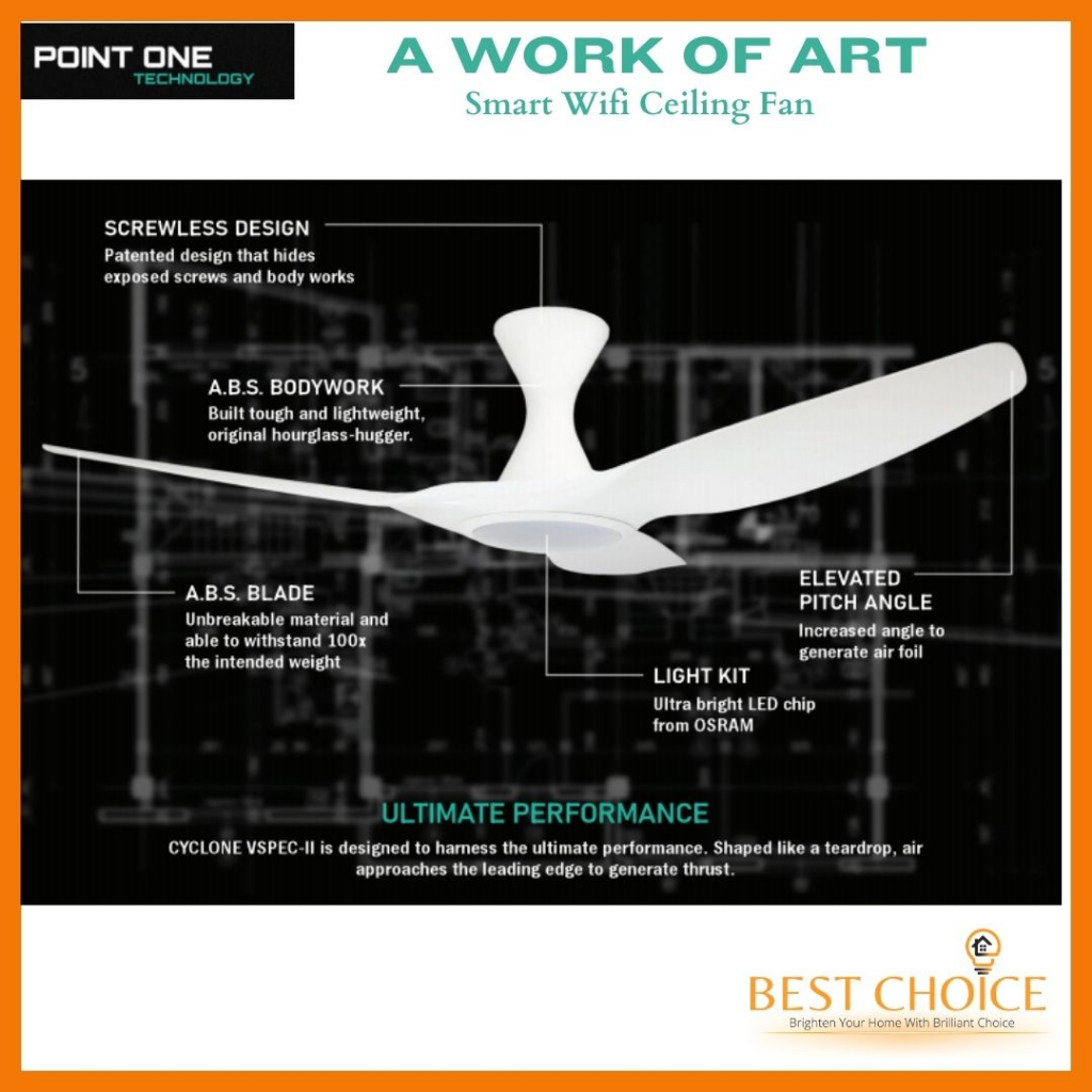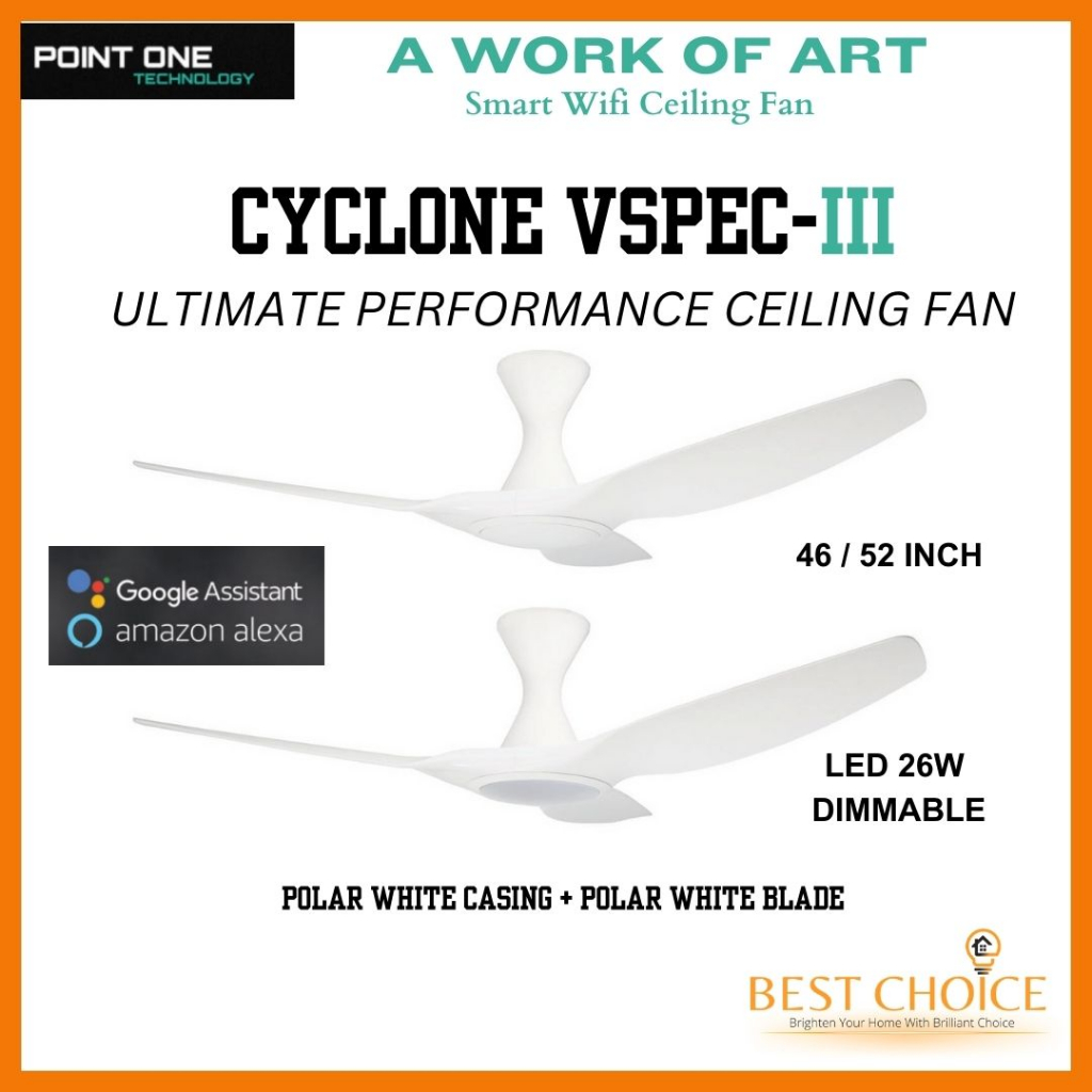 [CDC SG60] PO ECO FAN CYCLONE VSPEC-III SMART WIFI Ceiling FAN DC Motor 46/52 inch (LED Dimmer)