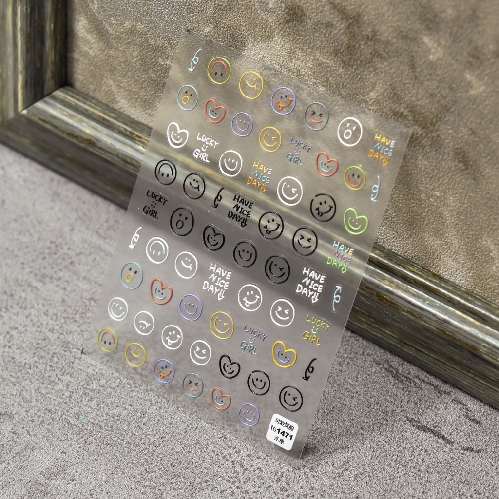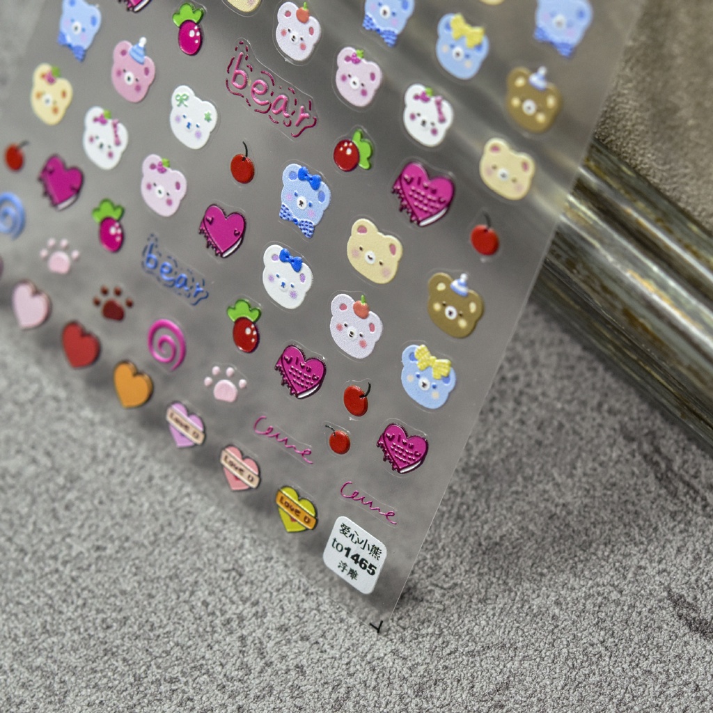 [CORAL SEA] Smiley Face Bear Embossed 1465 Manicure Patch Tools Stickers Sheets Accessories