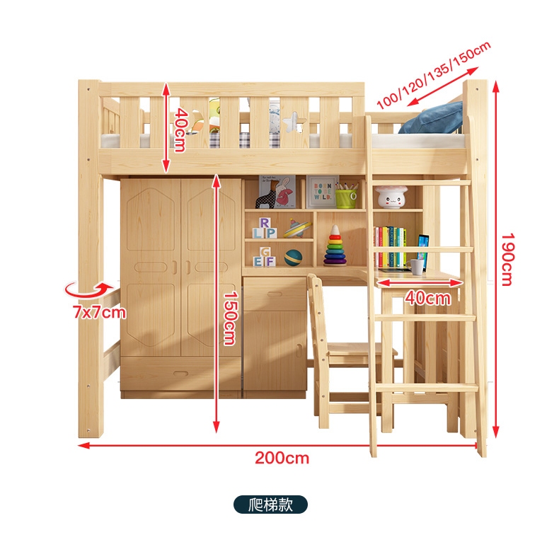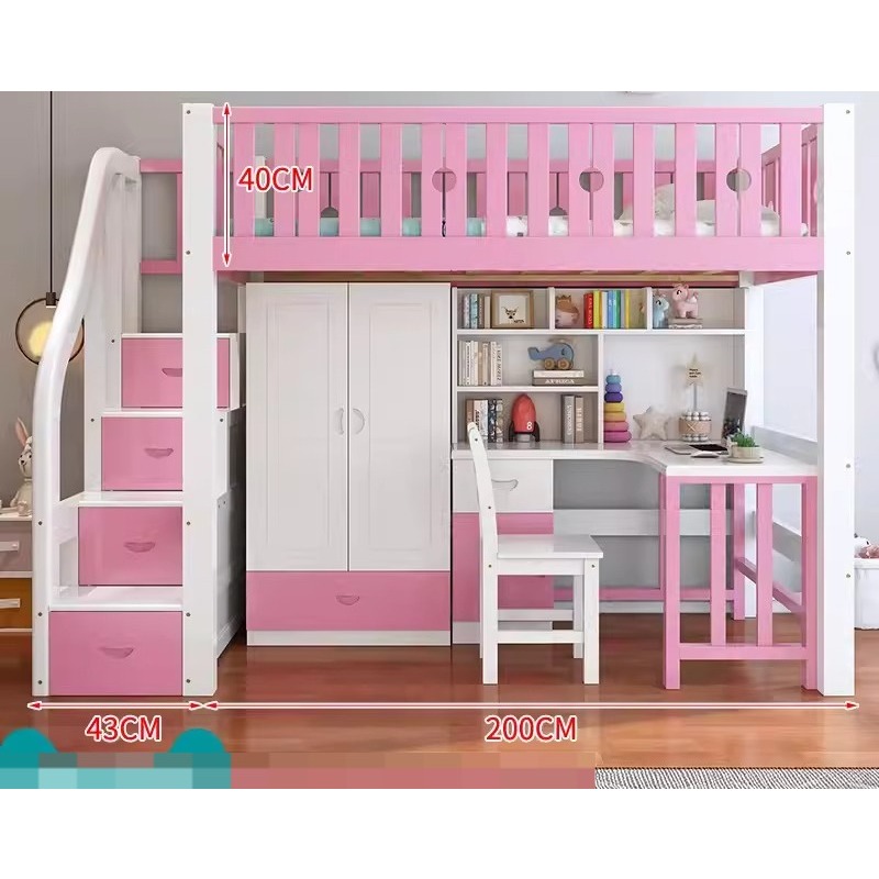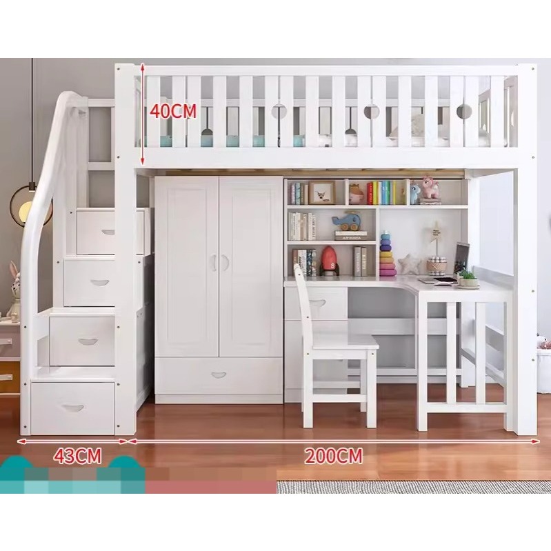 [CUSTOMIZE] Loft Bed L2 Wooden Kids Children Bedframe Multifunctional Combination Upper Lower Bunk Double-Layer Elevated