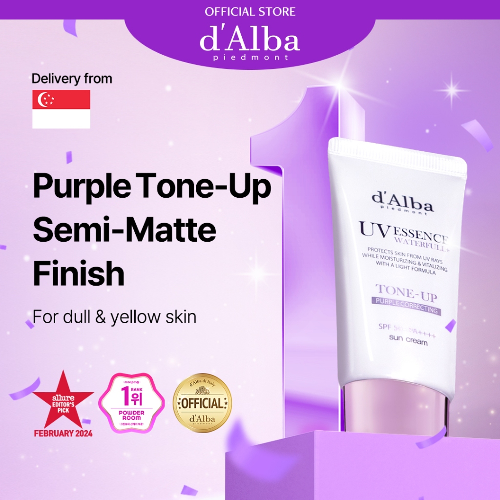 [d'Alba Official] Waterfull Purple Tone-up Sunscreen 50ml, Vegan, SPF 50+ PA++++, Sun Block, Purple Tone Up, Gentle and Safe Use Sunscreen