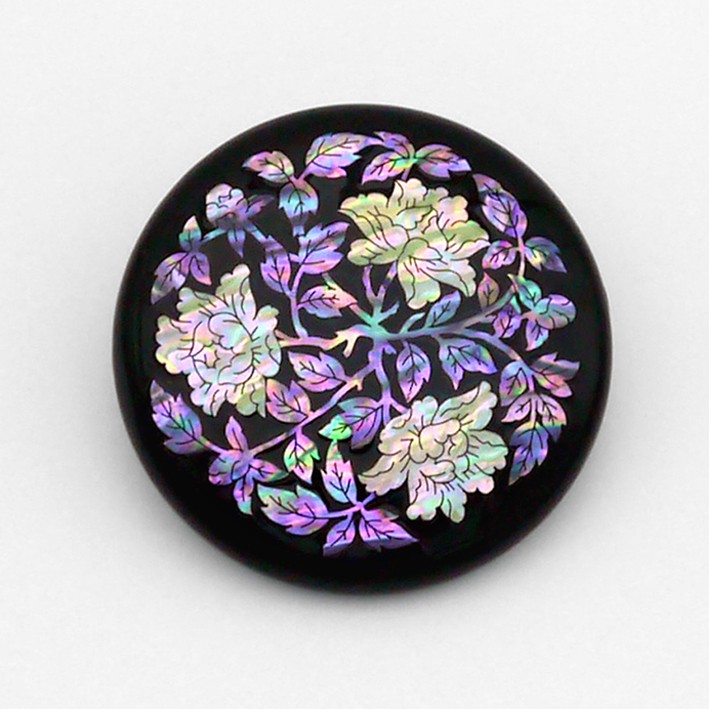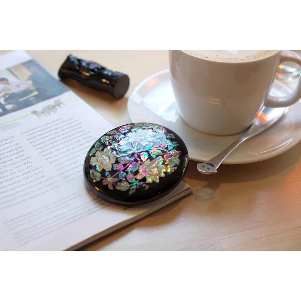 [Design Chosun] Compact Mirror - White Peony Blossom / Korean traditional Mother of Pearl Gift