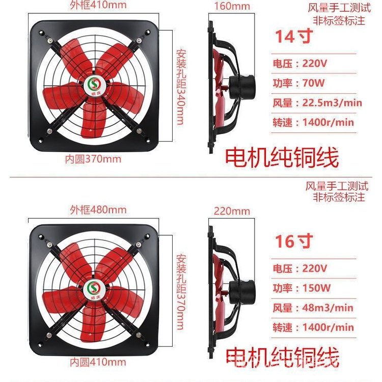 [Exhaust fan] Powerful Range Hood 14-Inch Ventilation fan Household Window Type Large Air Volume Industrial OJU8