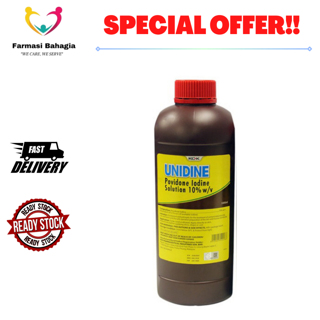 UNIDINE POVIDONE IODINE SOLUTION 10% W/V ( 100ML | 500ML | 1L ) - Antiseptic Solution for Wound Dressing