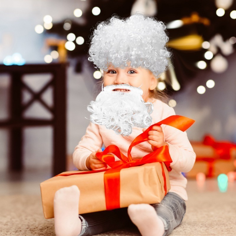 [ Featured ] Funny Santa Claus Beard Hat / Santa Claus Beard Wig Set / Realistic Curly Fluffy White Beard / Christmas Cosplay Props Party Decor / Xmas Present For Adult Kids