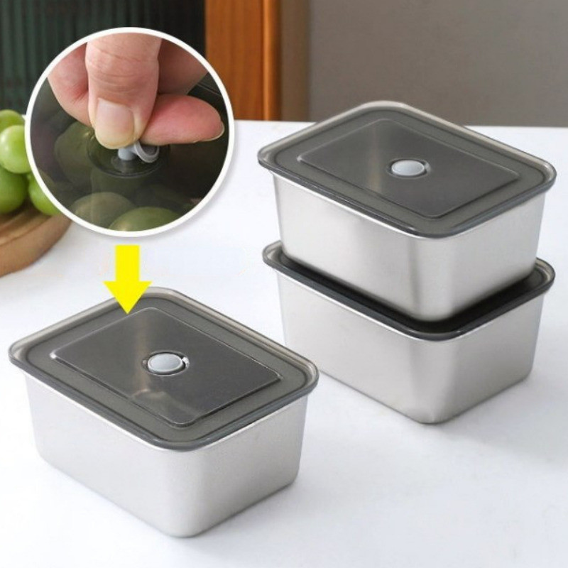 [ Featured ] With Lid Stainless Steel Lunch Casket - Leak-proof Anti-flavor Food Box - Freezer Meat Preservation Case - Fruit Washing Container - Cereal Spice Classify Storge Box
