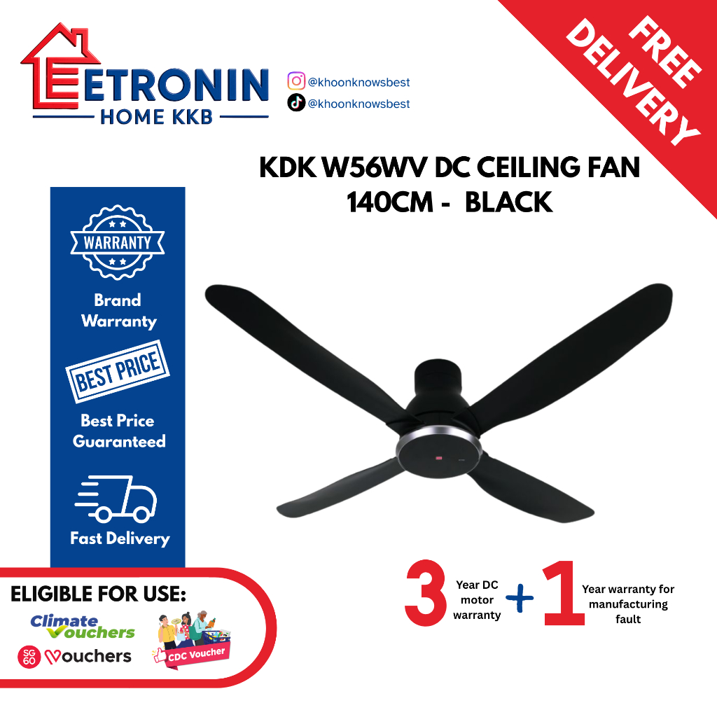 KDK W56WV 56" DC Ceiling Fan w/o light *Climate Voucher Eligible*