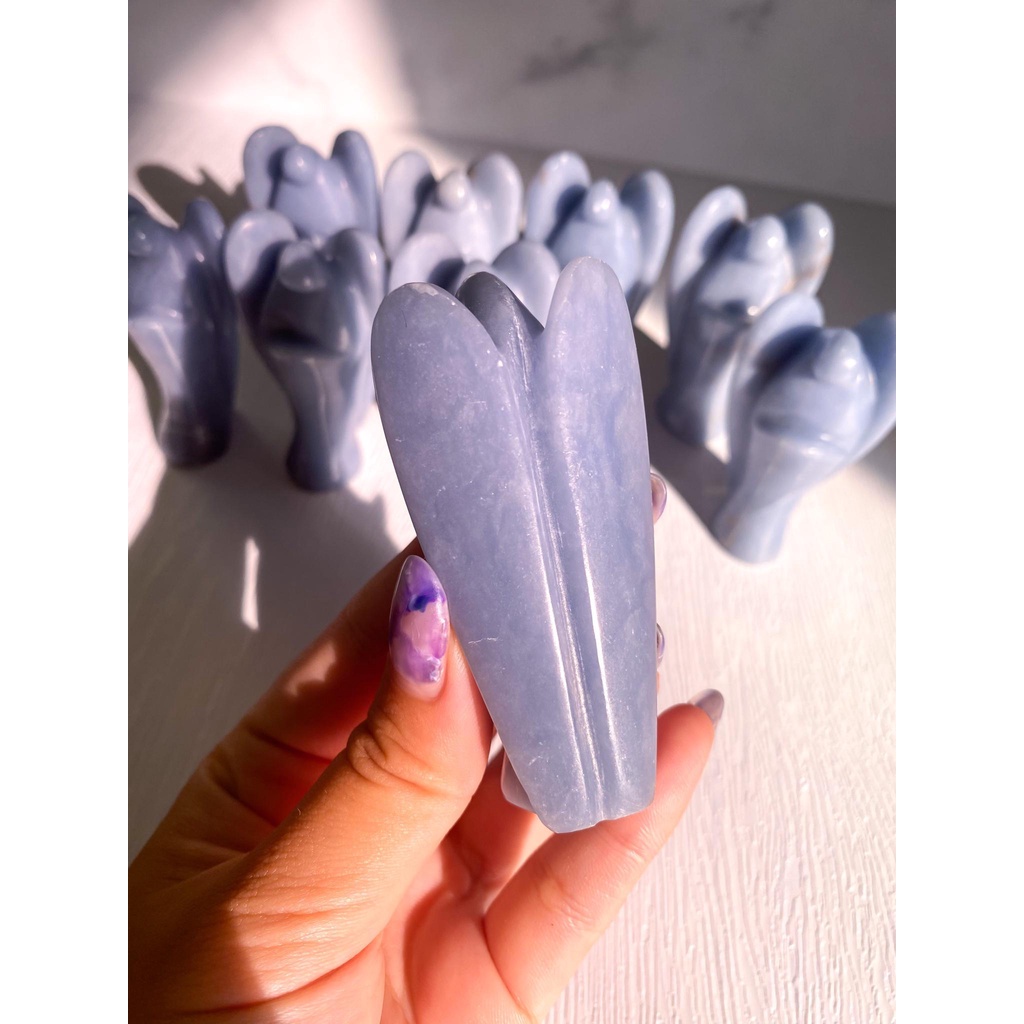 [Glace Crystals] Angelite Angel Carving from Peru for Protection and Spirituality