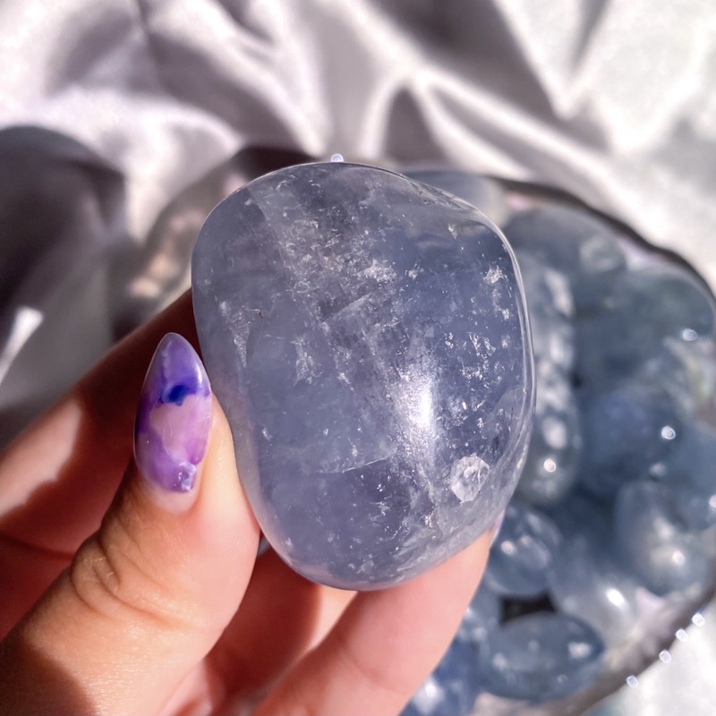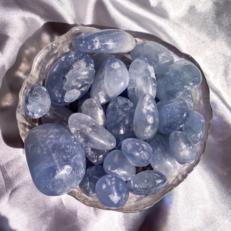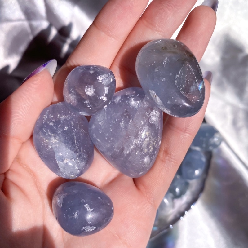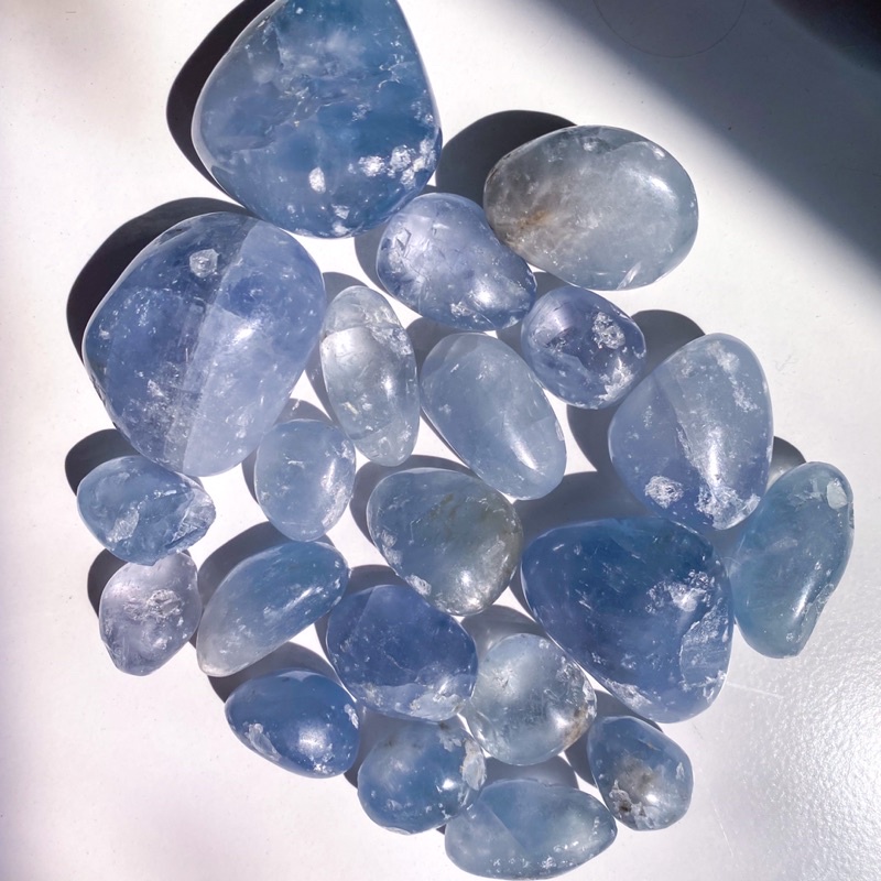 [Glace Crystals] Celestite Tumbles - Gemmy and Flashy Pocket Pieces for Crystal Gridding