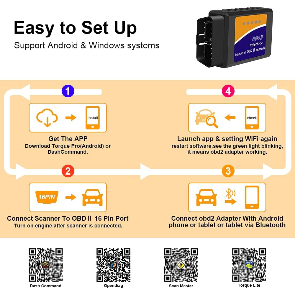 "Golvery Car Bluetooth OBDII Diagnostic Scan Tool,Wireless OBD 2 Scanner Adapter, Check Engine Light Diagnostic Trouble