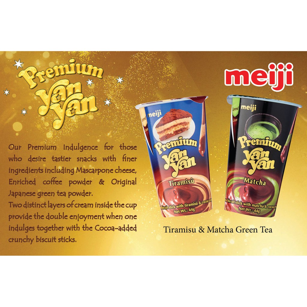 [HALAL] Meiji YanYan / Premium Yan Yan Biscuit Stick 44g (Matcha/ Tiramisu/ Mixed Berry Cheese Cake)