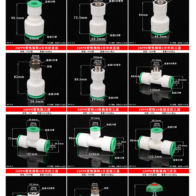 [HNK] Hot Melt-Free PPR Water Pipe Quick Connector In-Line Type Quick Connector Valve Faucet Hot and Cold Pipe Fittings Daquan 4 Points 6 Points 3cm