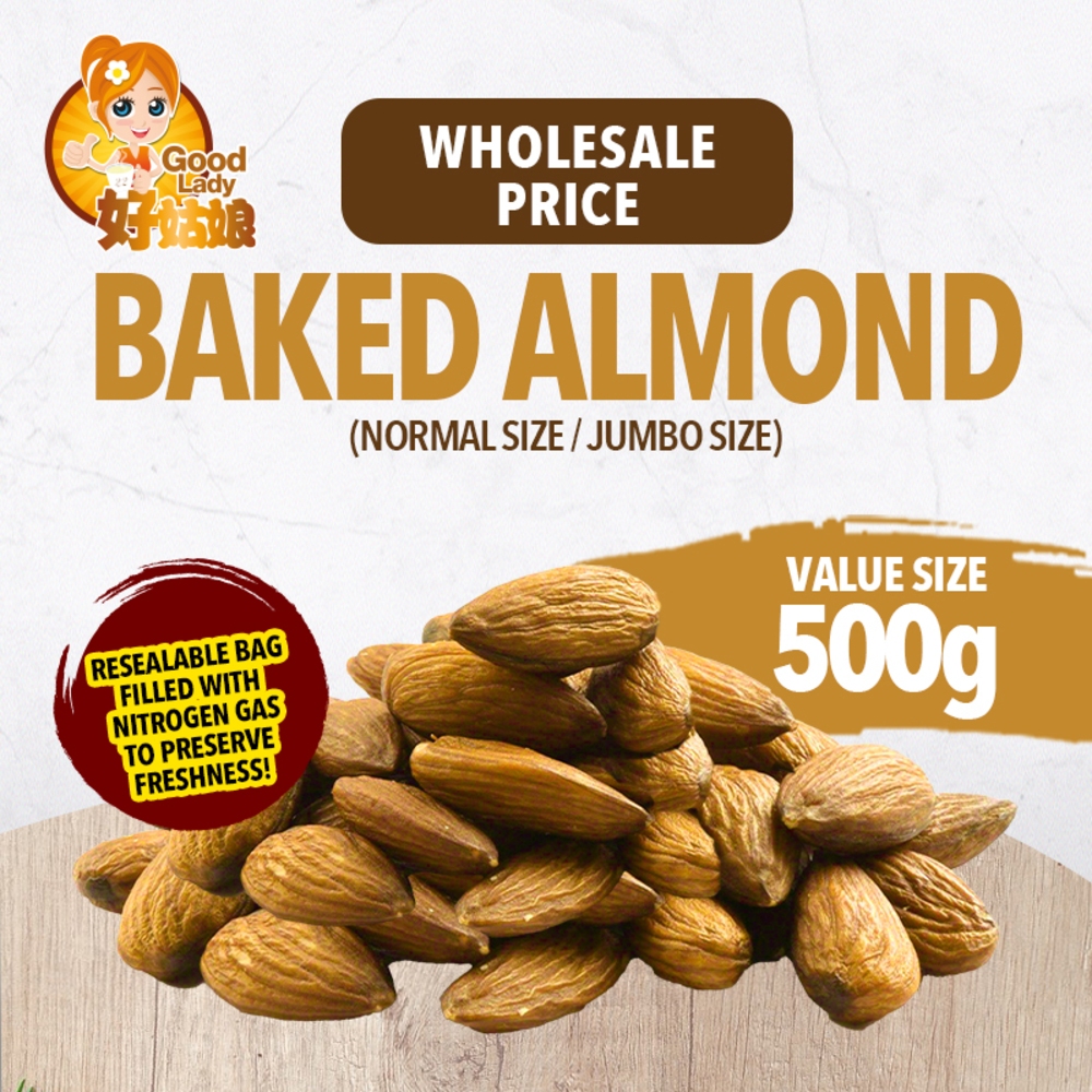 [Healthy Nuts] USA Jumbo Unsalted Baked/Raw Almond - 1kg (500g x 2 packs)