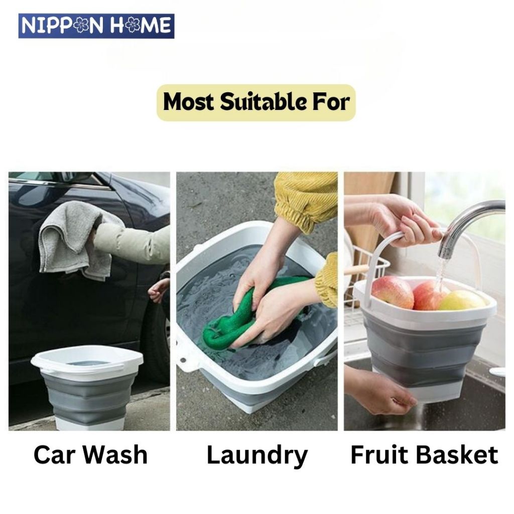 [ Household ] Collapsible Wash Basin Foldable Pail Square portable bucket Fold Folding Portable Pail Bath water bucket