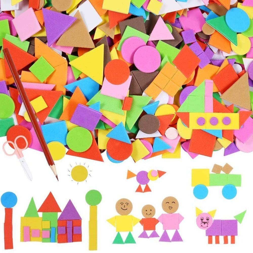 [ IN STOCK ] 1000pcs Self-Adhesive Geometry Puzzle, Geometry Self-Adhesive Foam EVA Stickers, Kindergarten Foam Puzzle EVA Children Education DIY Toys Children Kids Gifts
