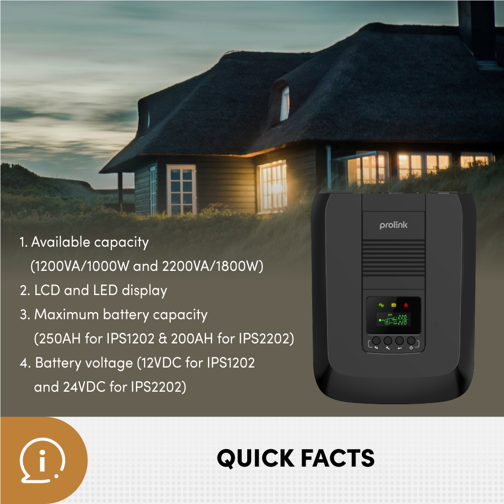 [IPS Inverter] Prolink 1200VA - 2200VA | 1000W - 1800W Simulated Sinewave Power Inverter with LCD display