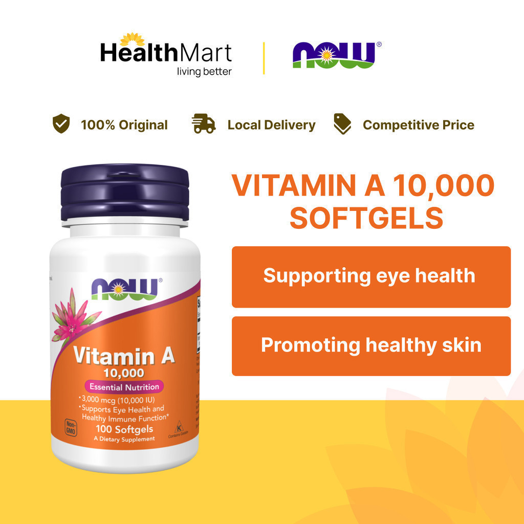 [SG] Now Foods, Vitamin A 10,000 IU,100 Softgels (Eye Health, Essential Nutrition)