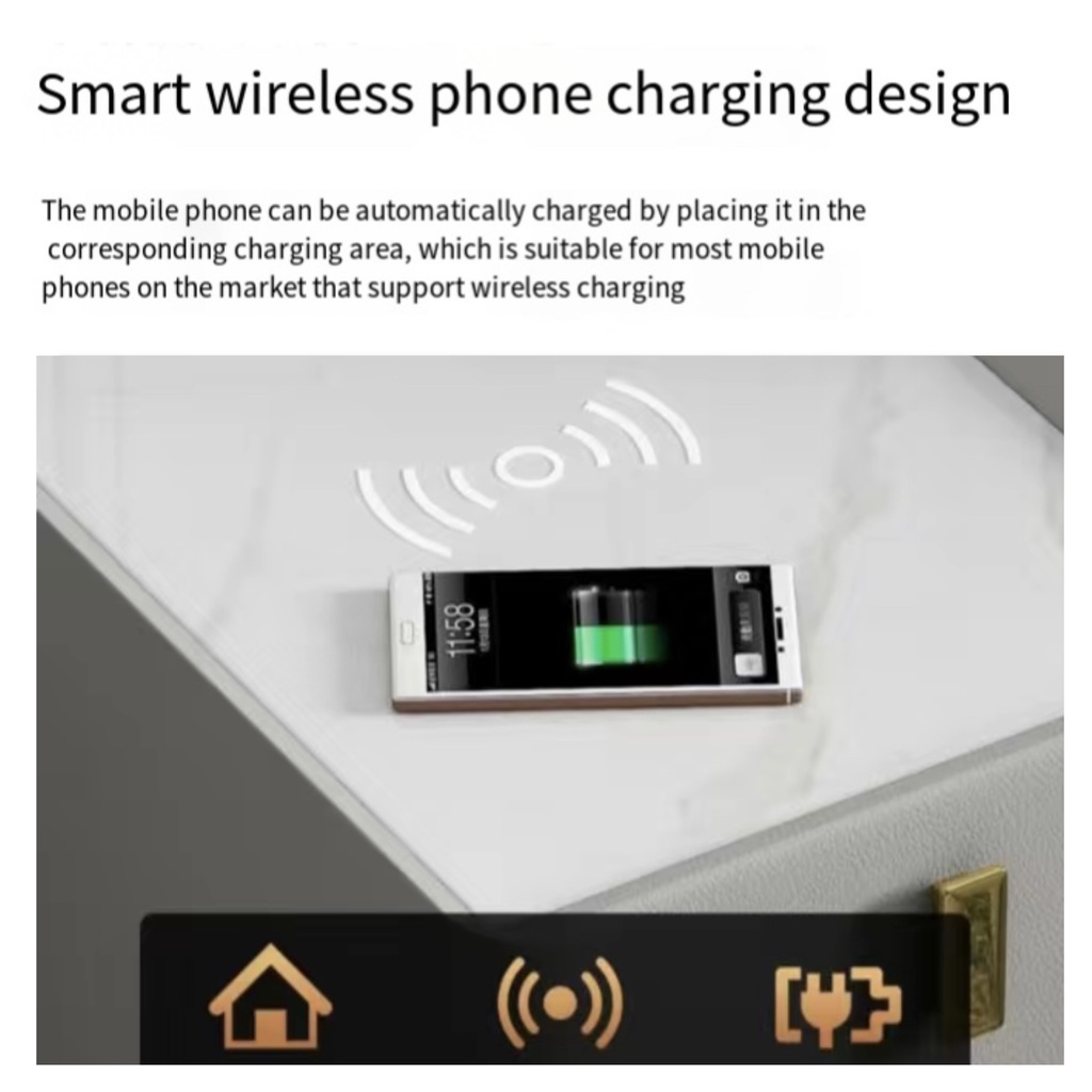[In Stock]Wireless+LED Sensor Light Table/Small Multi-function Storage Cabinet With drawers/Modern bedroom nightstand