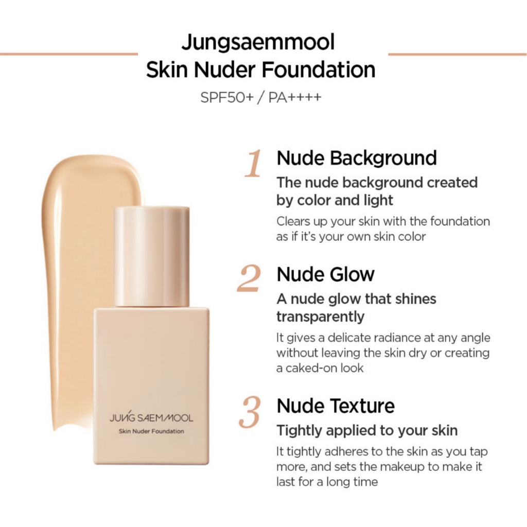 [Jungsaemmool] Skin Nuder Foundation (puff included) SPF50+ PA+++ 30ml Skin Setting Base JSM Essential Long Wear Foundation