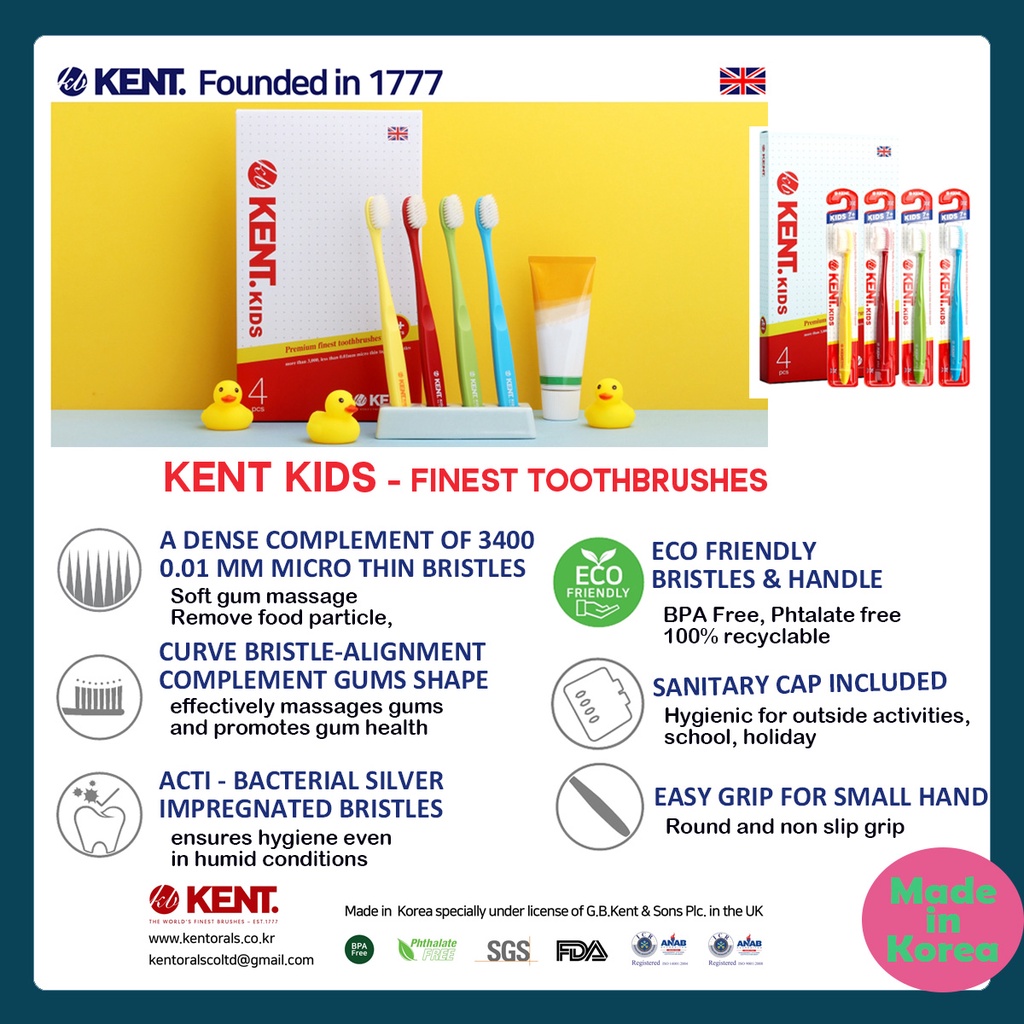 [KENT] Kids Toothbrush 15 Box Bundle Set Eco friendly ultrafine ultra soft Korea toothbrush [1box = 4 pcs]