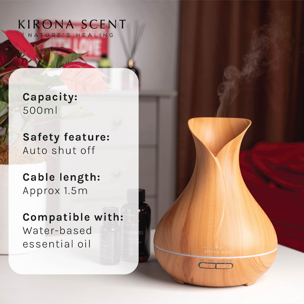 [KIRONA SCENT] Tulip Aroma Diffuser 500ml (Light Wood) | Relaxing, Aromatic Fragrance | CNY Gifts