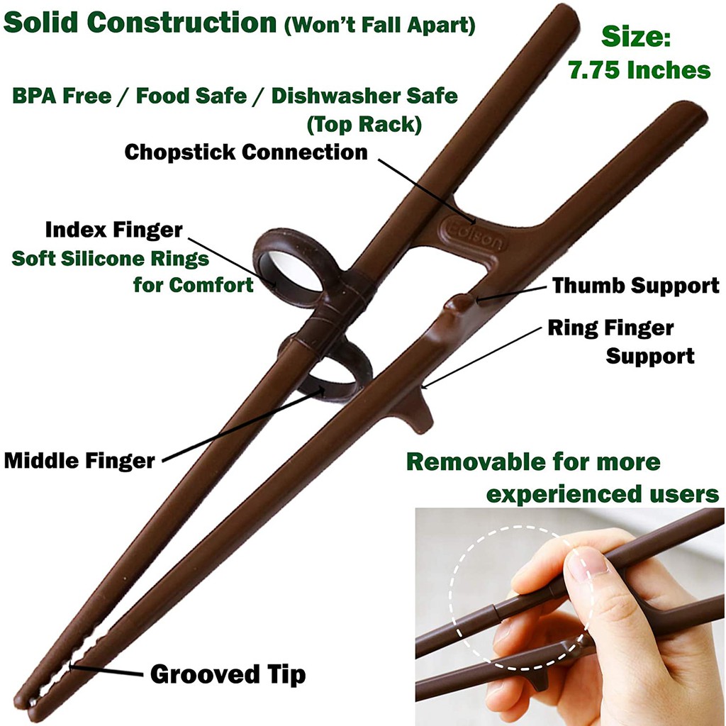[KOREA] Edison Training Chopsticks Helper for Adults, Beginners | Adult Learning Chopsticks with Removable Finger Rings (Right Hand)