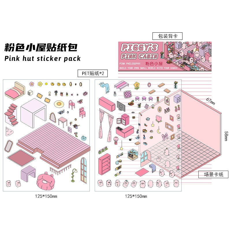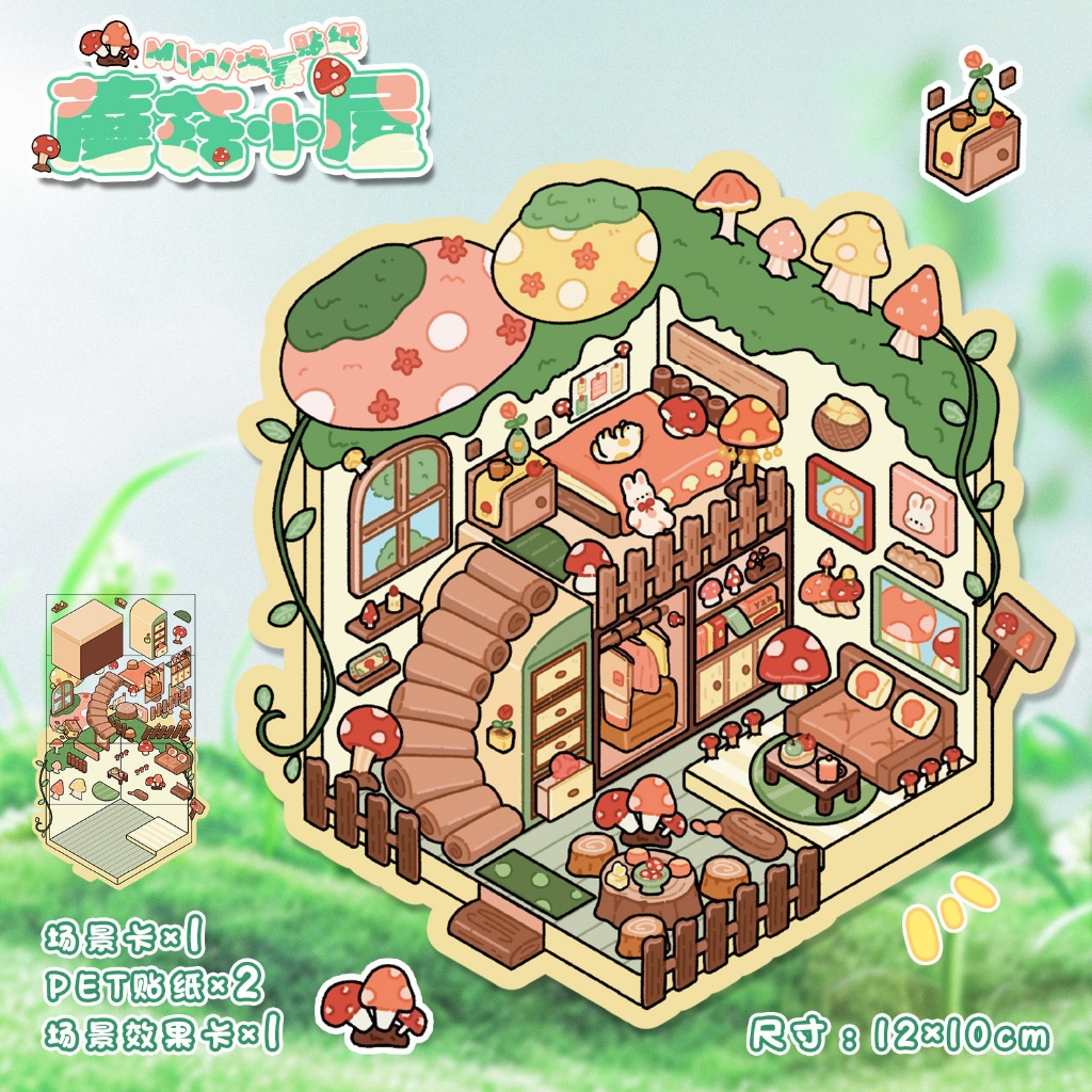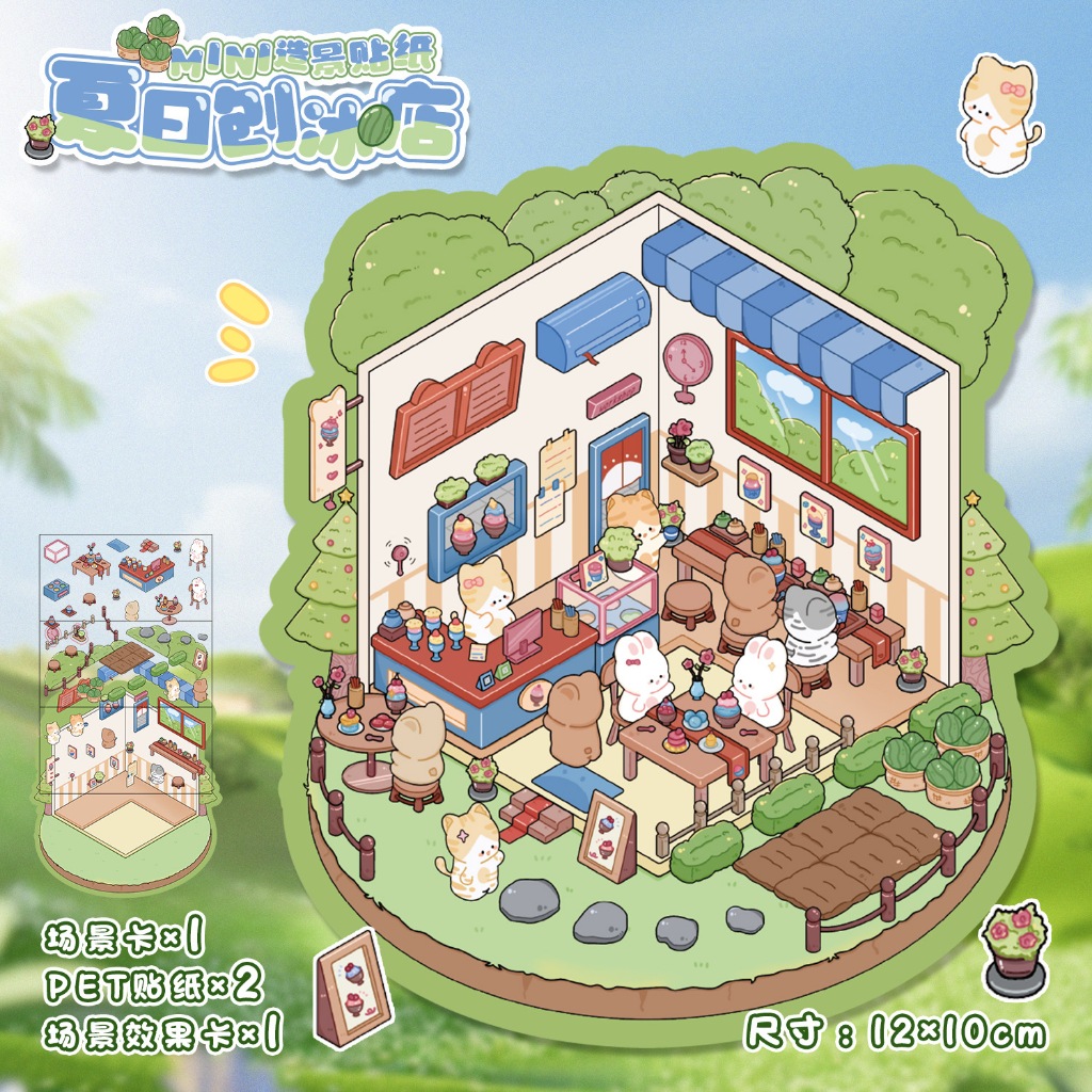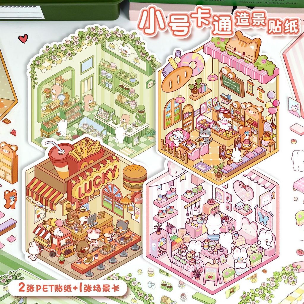 KW 3D Cute Aesthetic Scenes Stickers A5 Size for Gift Scrapbook Journal Room Series HG 52-59