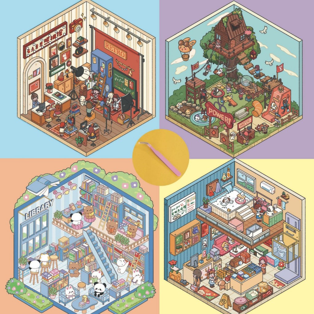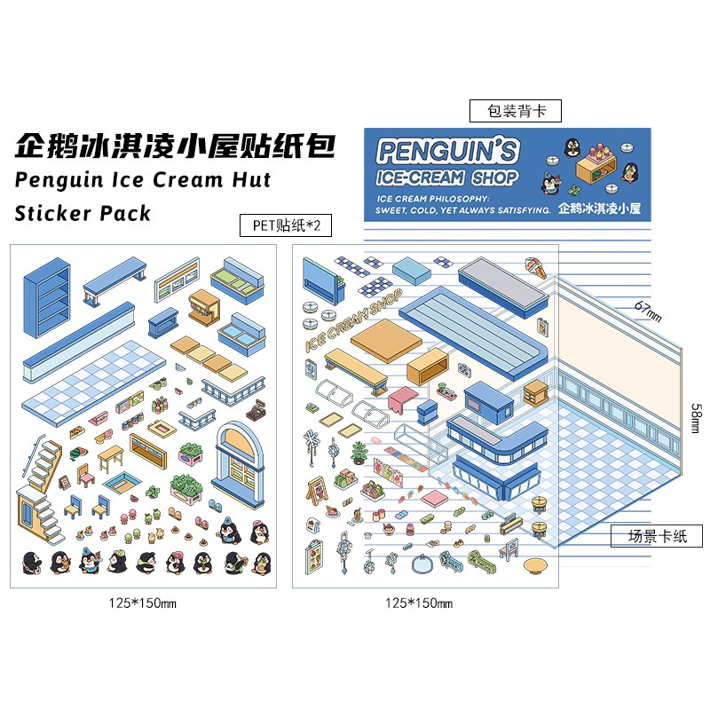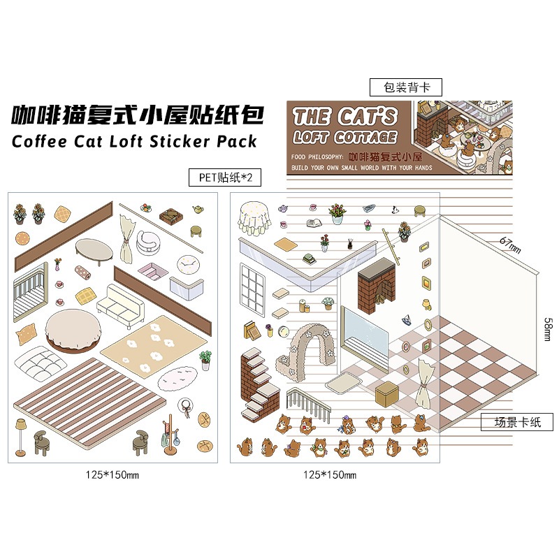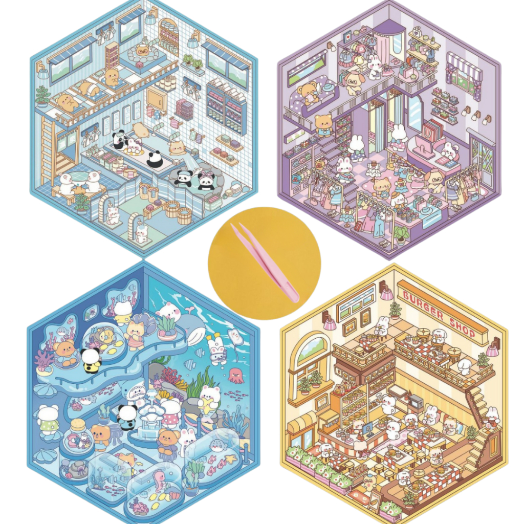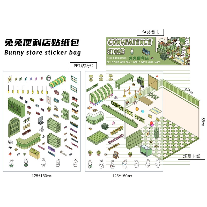 KW 3D Cute Aesthetic Scenes Stickers A5 Size for Gift Scrapbook Journal Room Series HG 52-59