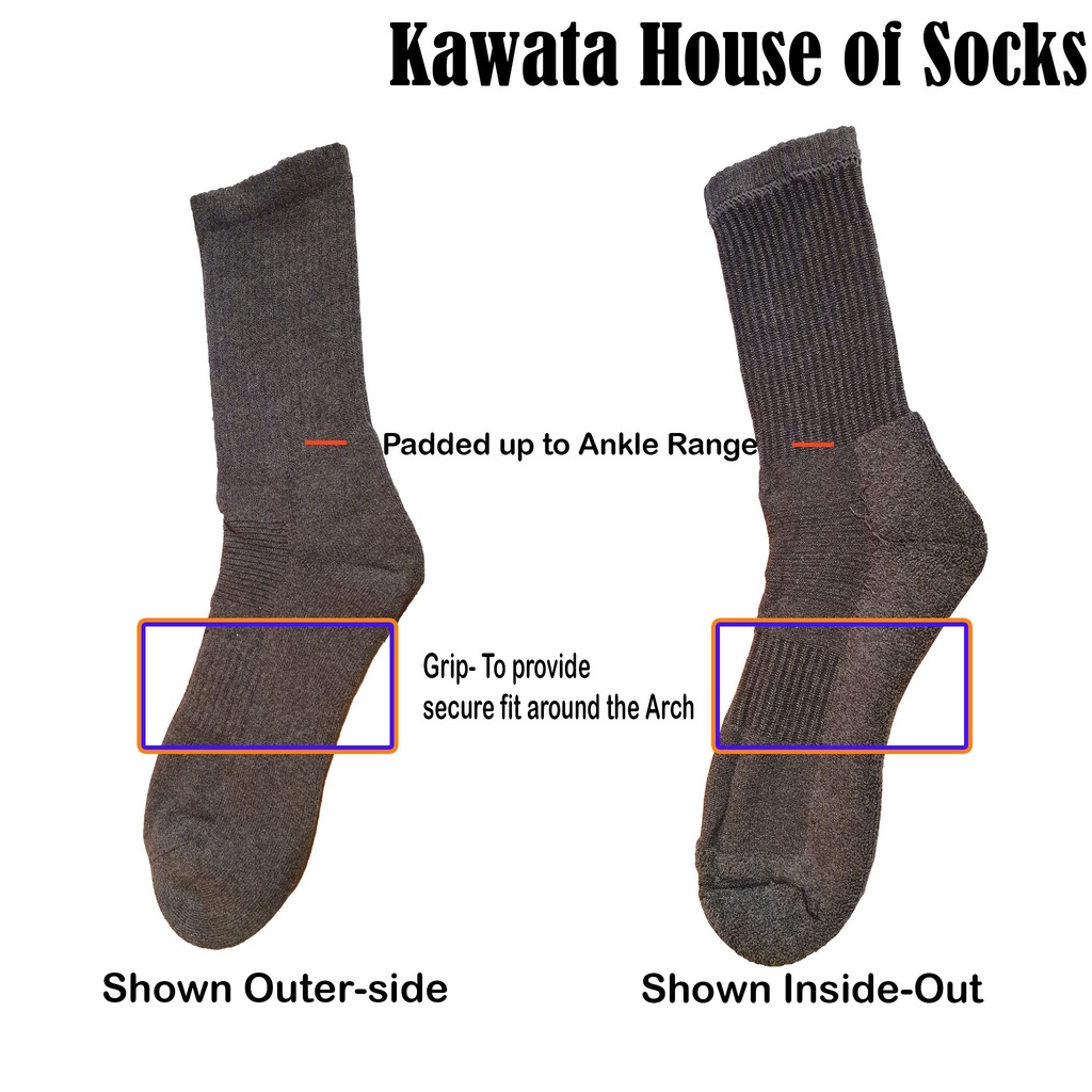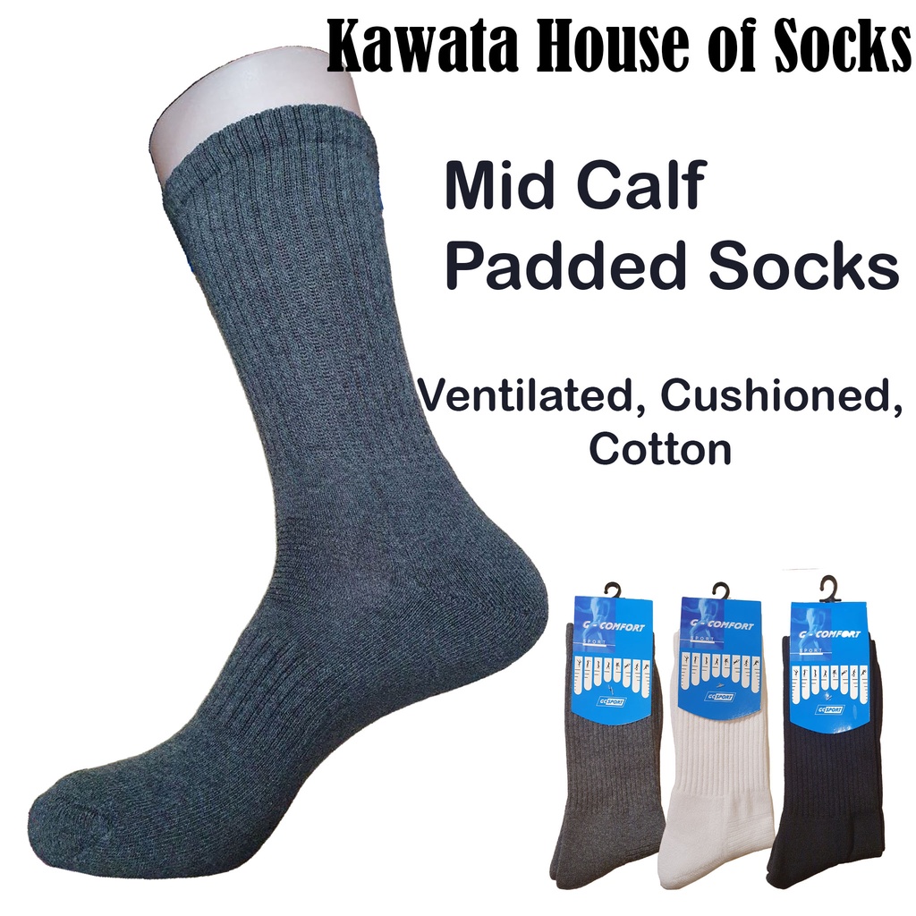 [Kawata] Bundle 3 Pairs Thick Padded Mid Calf Socks / Mid Calf Cushioned Socks | Padded Sport Socks | Performance Boost