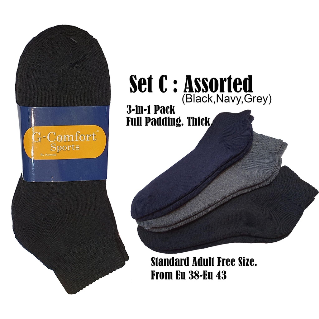 [Kawata] Bundle of 3 Pairs Sport Socks | Thick Padding Socks