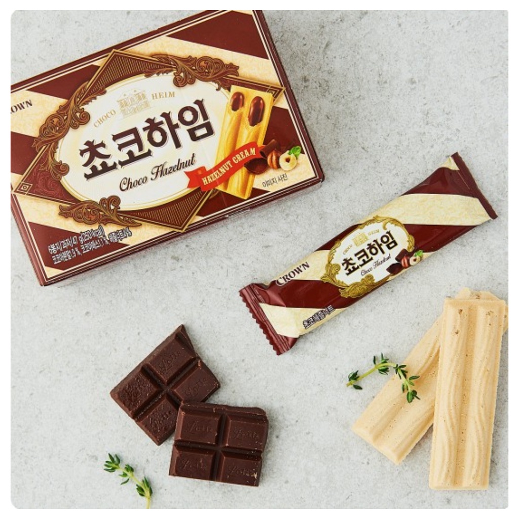 [Korean Snack] CROWN Chocolate Heim (Chocolate / White Hazelnut Cream)