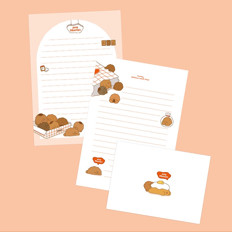 [LAST One] Cute Breads AngBbangz Letter Paper Envelope Set Stationery Writing Paper Cute Korean Stationery