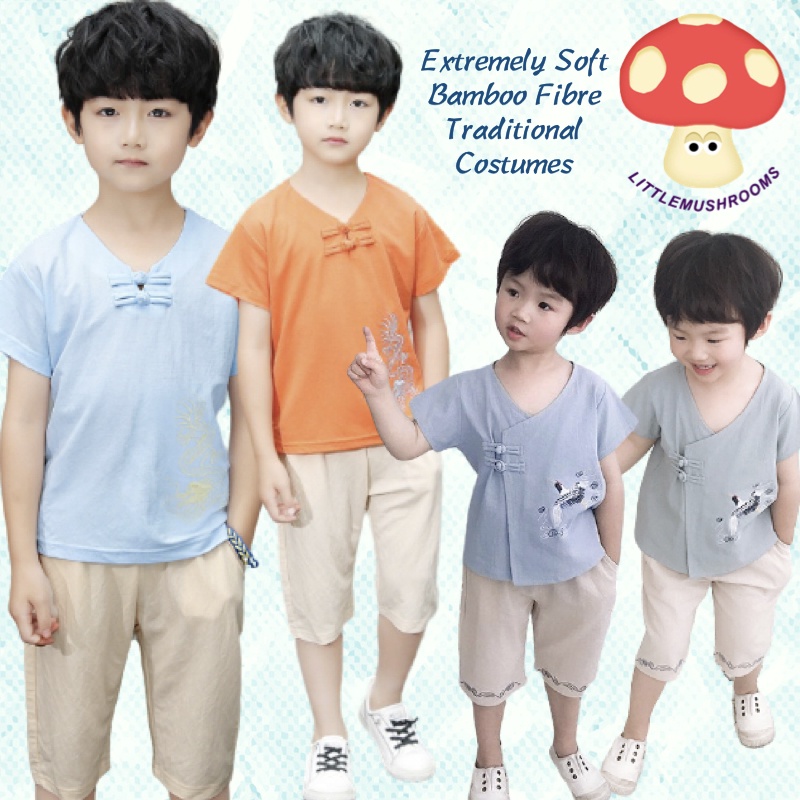 +LITTLE MUSHROOMS+ KIDS CHILDREN BOY CHINESE NEW YEAR TRADITIONAL COSTUME KUNGFU SUIT SET CNY RACIAL HARMONY COTTON NEW