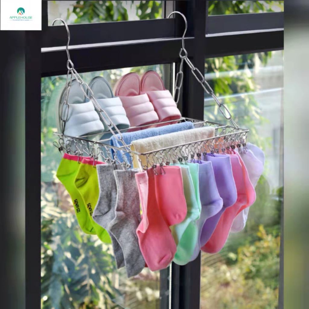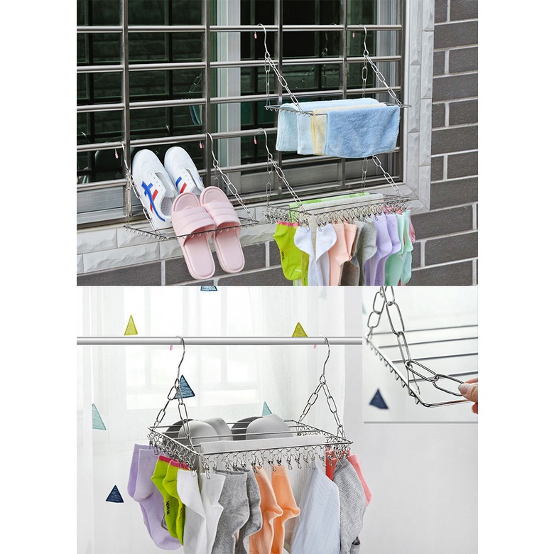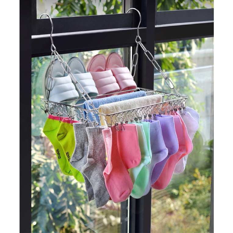 [LOCAL SELLER]Stainless steel balcony drying rack storage dormitory artifact drying socks rack multifunctional clip dryi