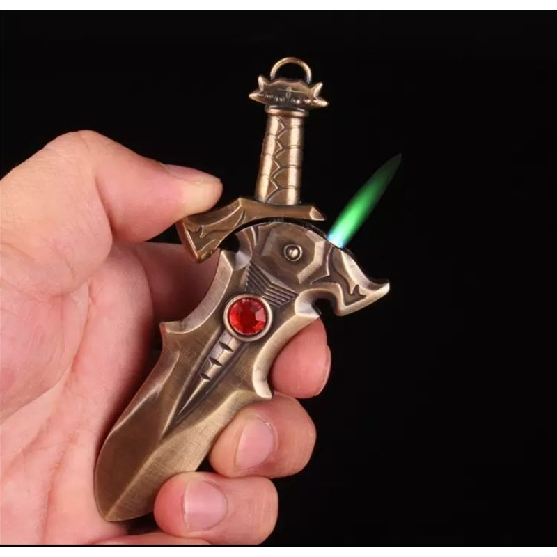[LOCAL SELLER] Sword Design Windproof Flame Lighter / Green Flame / Unique Design / Butane Gas Lighter